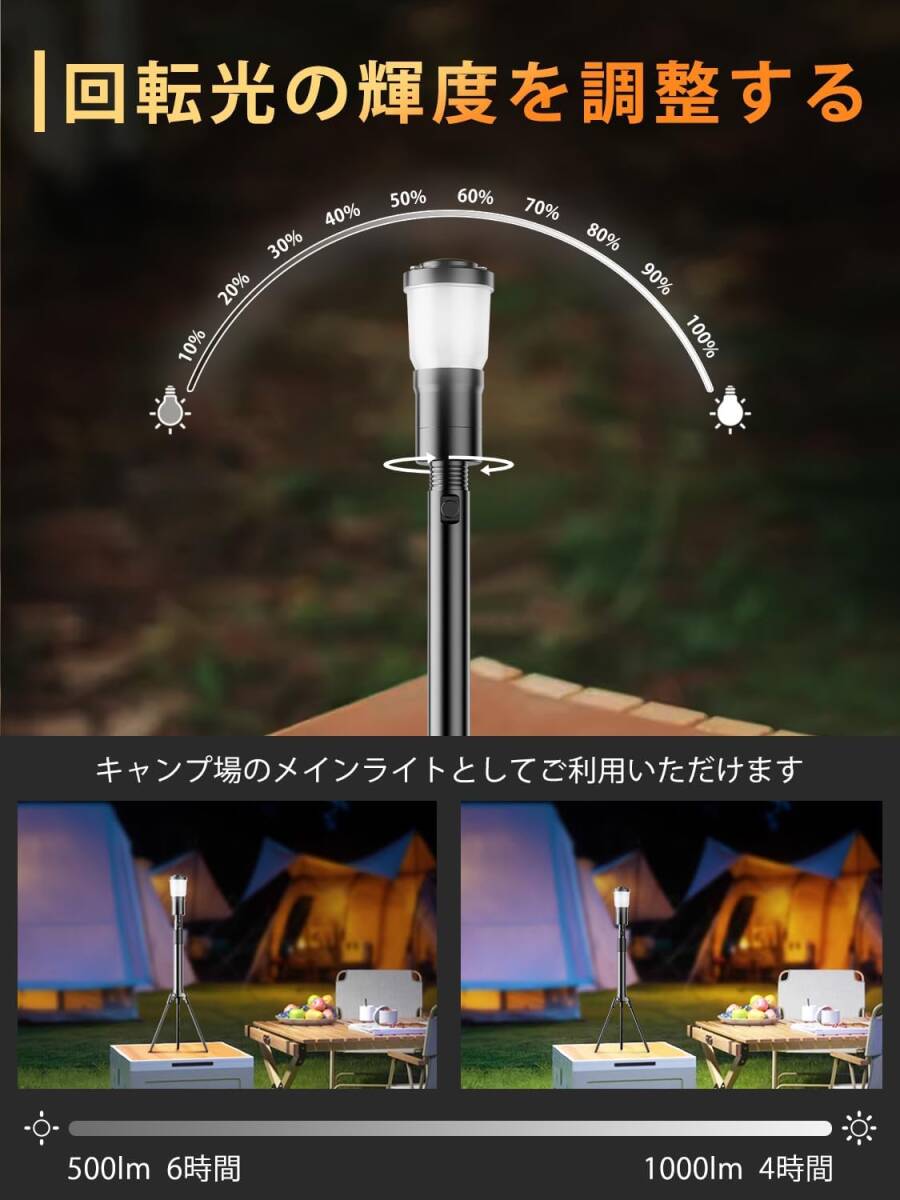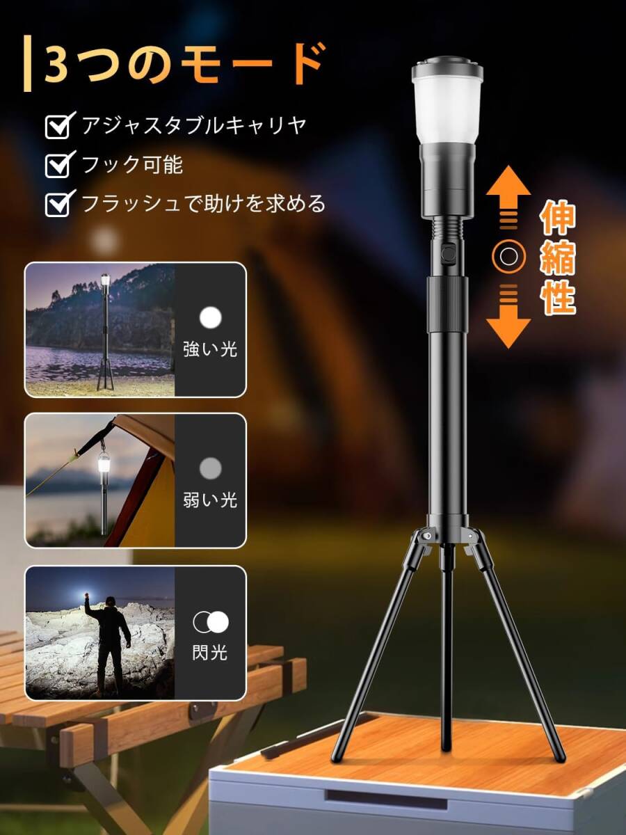 LEDランタン キャンプライト・懐中電灯機能・Type-C充電式・3つの照明モード・アルミ合金製三脚・日本語取扱説明書