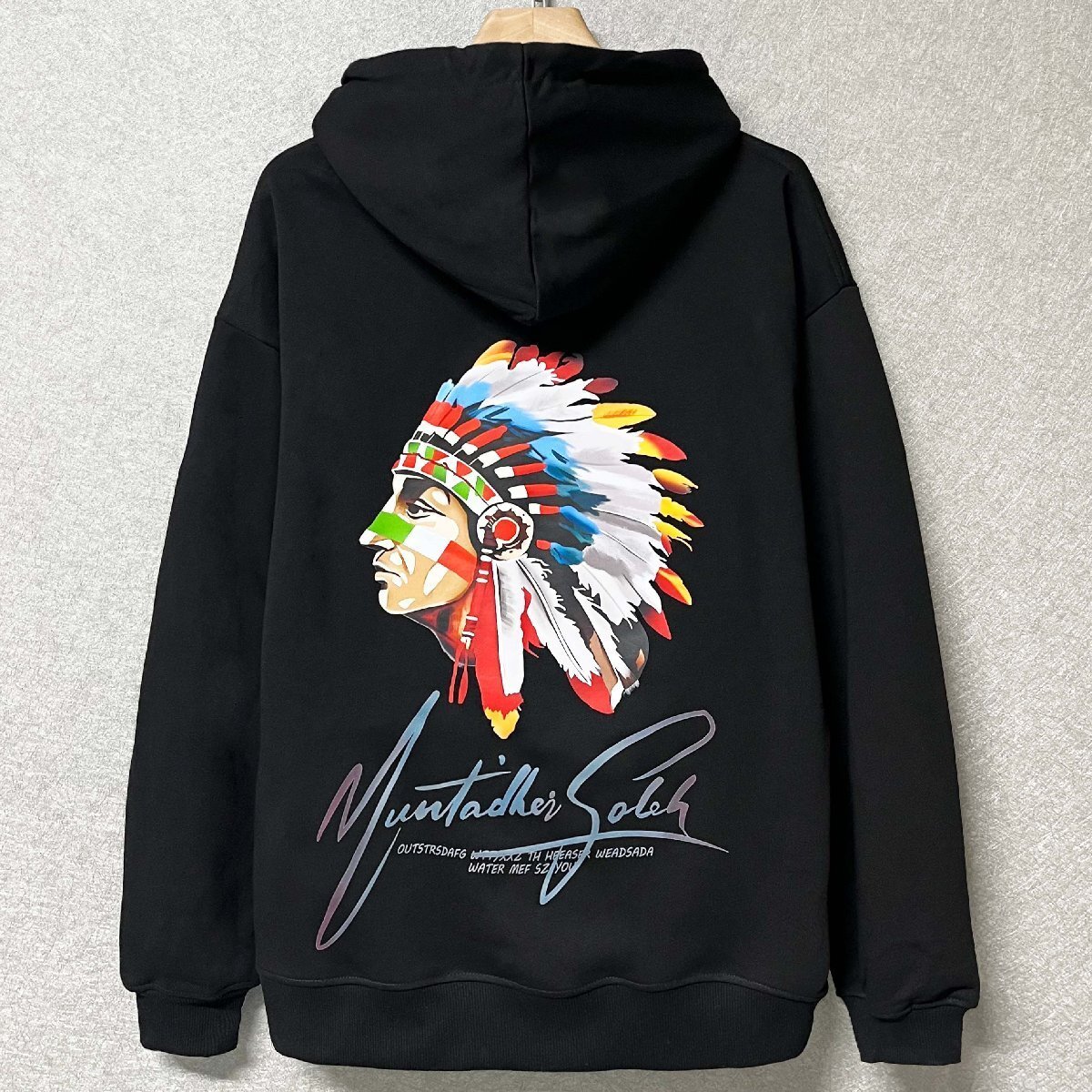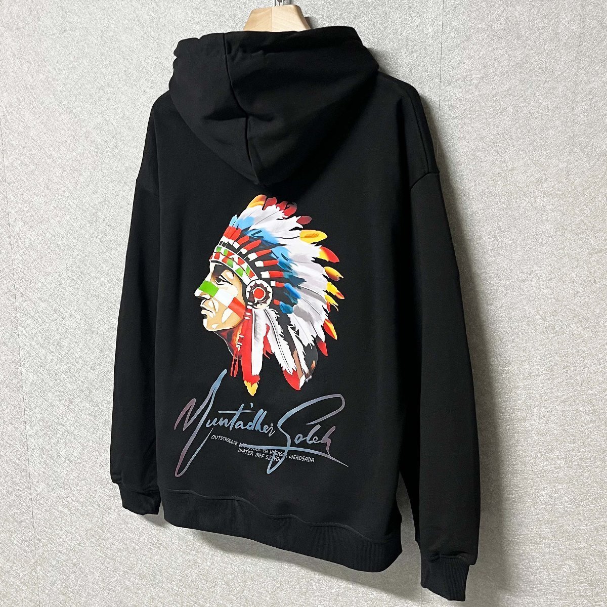 バックには独特な気品を漂うインド人のプリントが、シックな佇まいを演出し、いつもと違う雰囲気を楽しめます。1枚で着れば主役になる存在感がたっぷりです。袖口・裾にはリブ素材を採用、伸縮性があり、動きやすい。そして、冷たい空気の侵入を防ぎ、全面的に体の暖かさを保ちます。