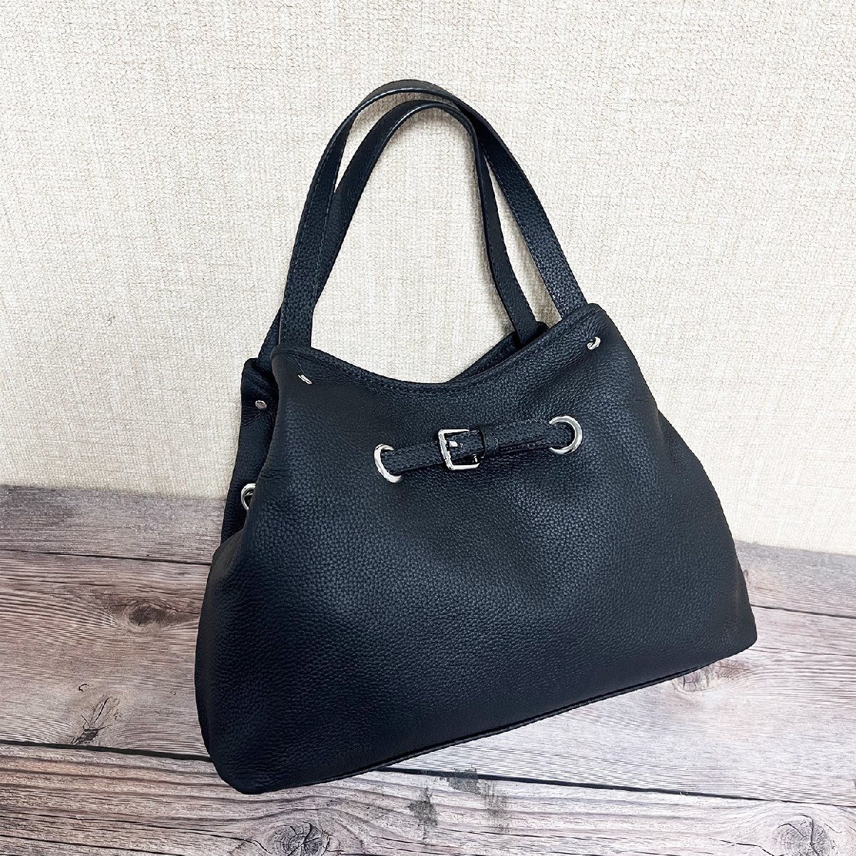 バックの底に鋲が4つ付いております、直置きでも傷や汚れからバックを守ります。サイズが大きすぎず小さすぎず、財布やキー、折りたたみ傘、モバイルバッテリーやタブレット等必要なものがちょうど収まります。ショルダーベルトが付いており、長さ調整できるなので、ハンドバッグとショルダーバッグとしてもお使い頂けます。裏面でファスナー付きポケットが付き、スマホ、カード、鍵、口紅などよく使う小物が整理できて便利だけではなく防犯もできます。