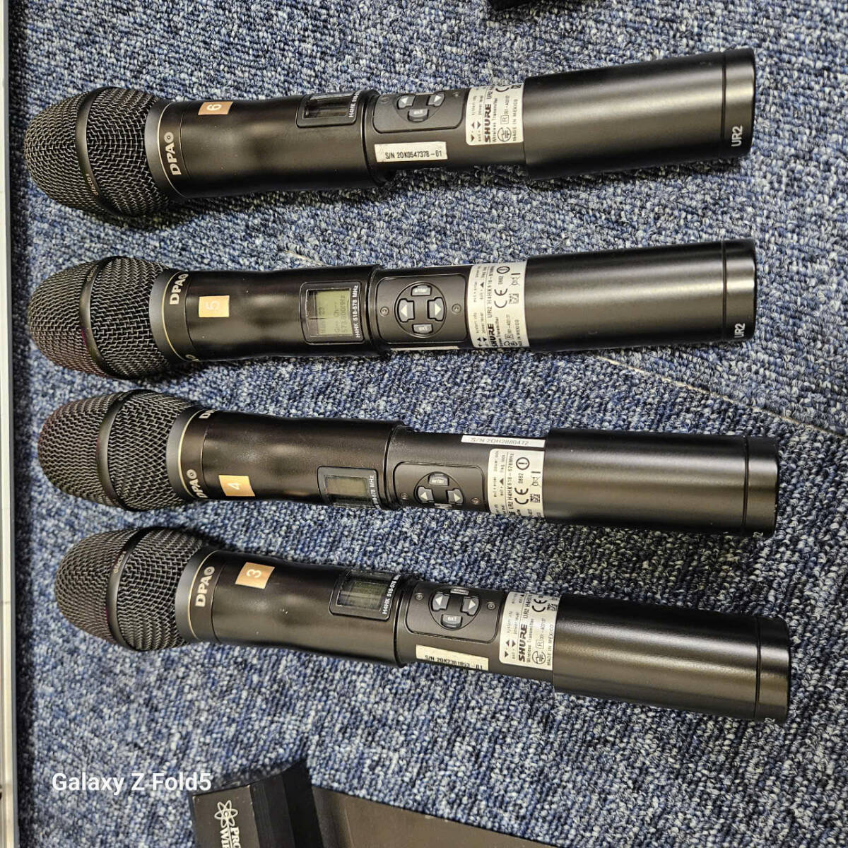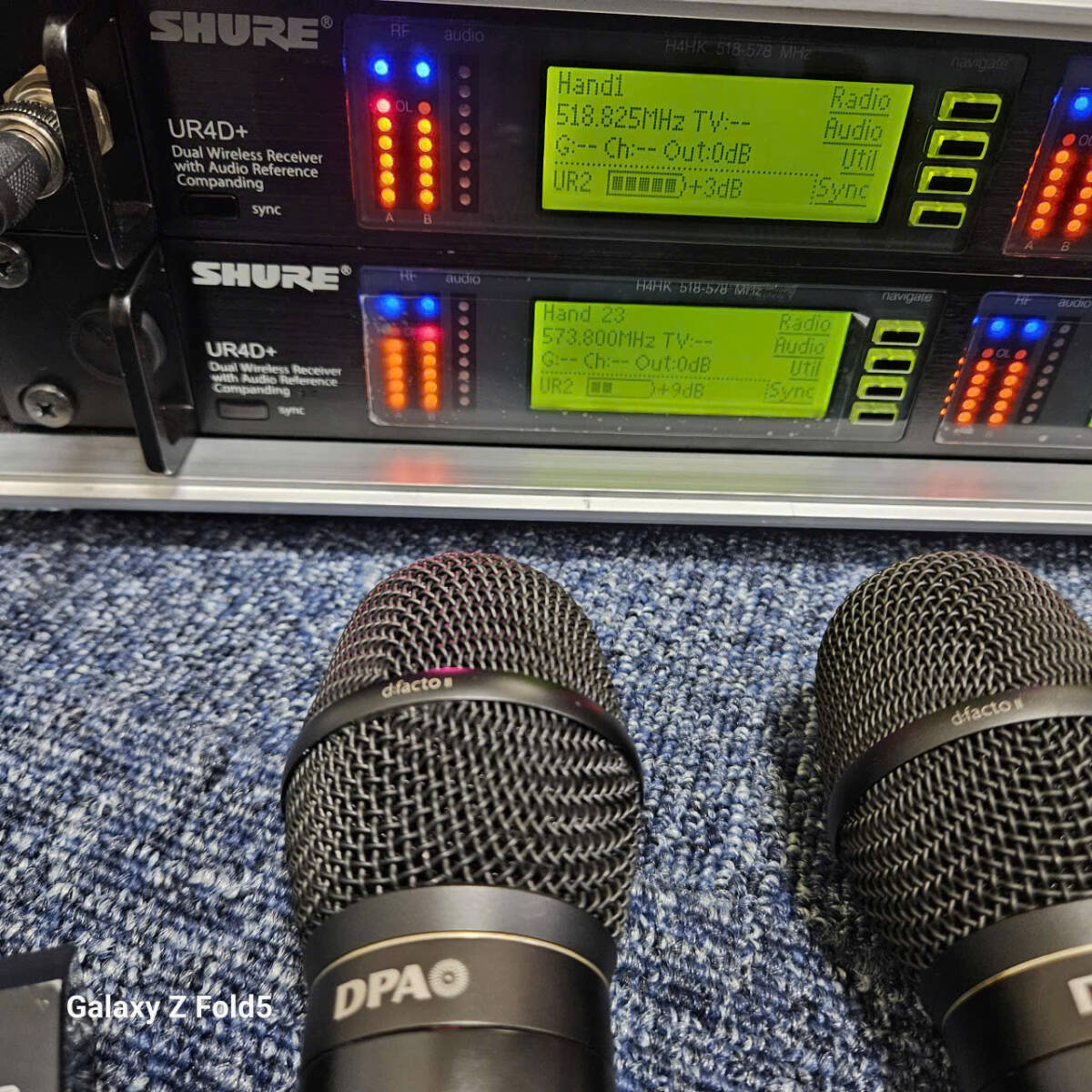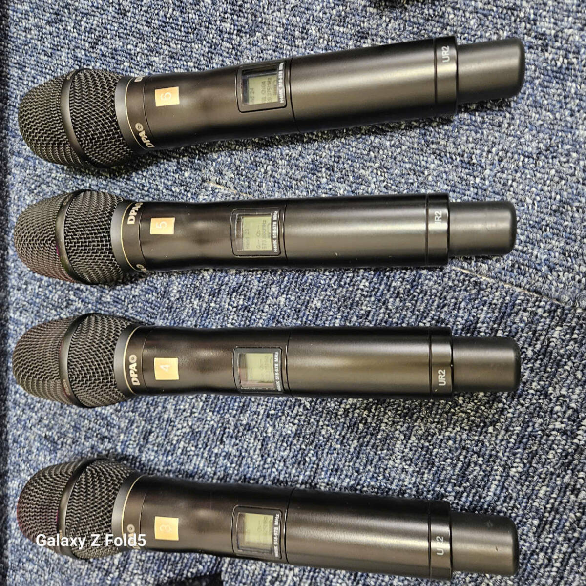 SHURE ワイヤレス受信機 UR4D+ 2本, SHURE UR2-H4HK/DPA 8018v 4本。