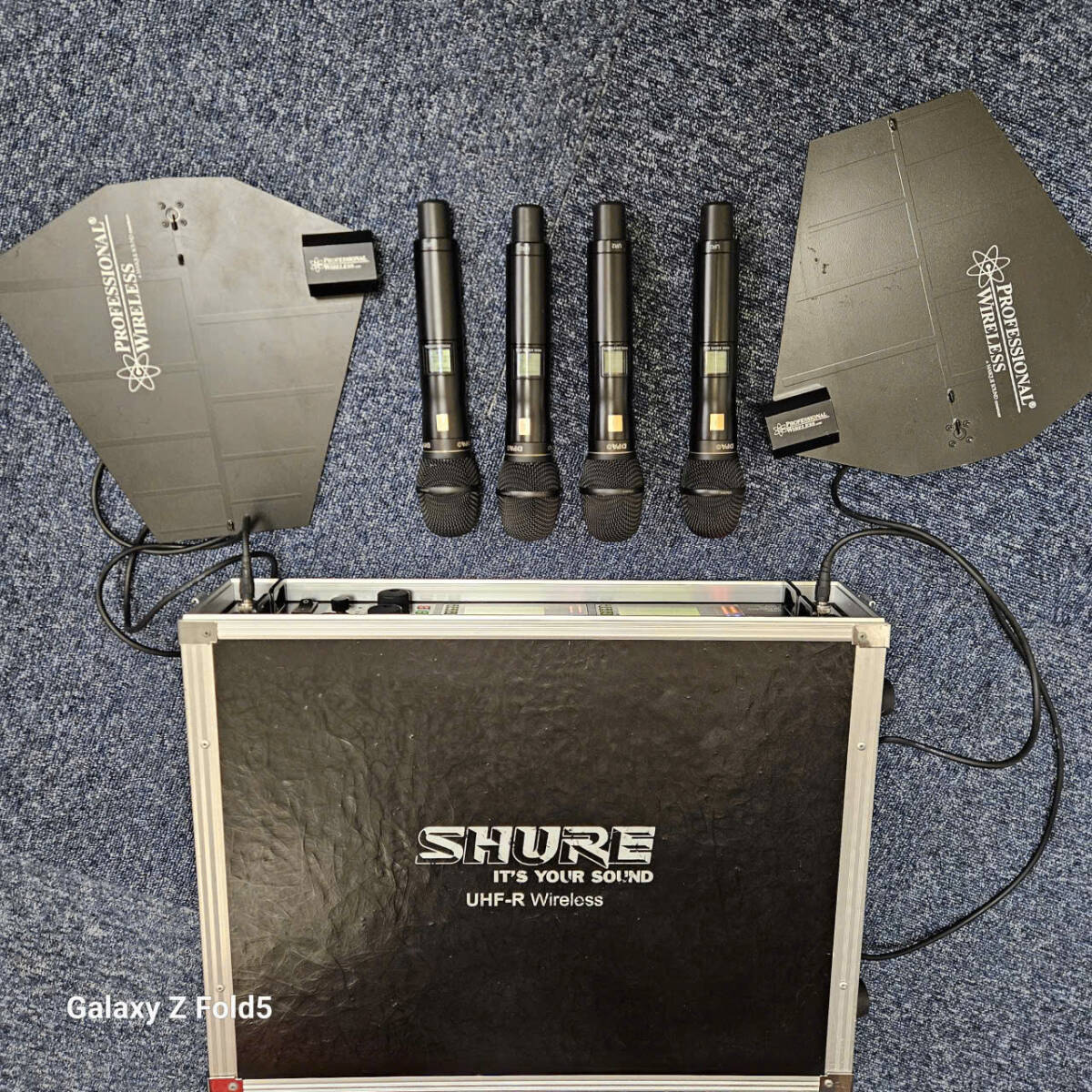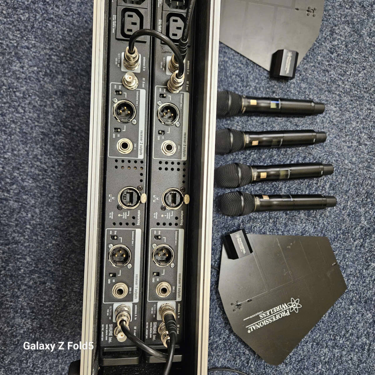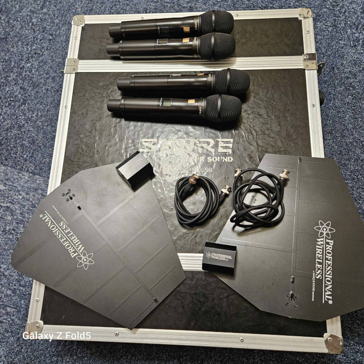 SHURE ワイヤレス受信機 UR4D+ 2本, SHURE UR2-H4HK/DPA 8018v 4本。