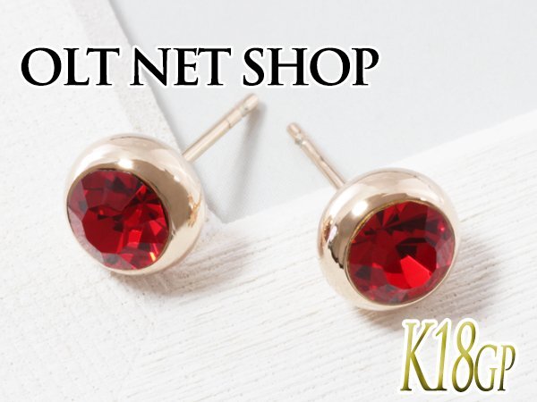 ピアス レディース ガーネット シンプル 18金 18kコーティング ピンクゴールド 赤 カラー/ K18GP CZダイヤ 一粒ピアス(ガーネットカラー)