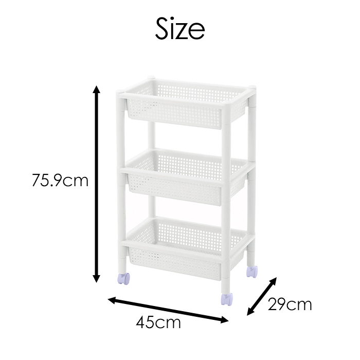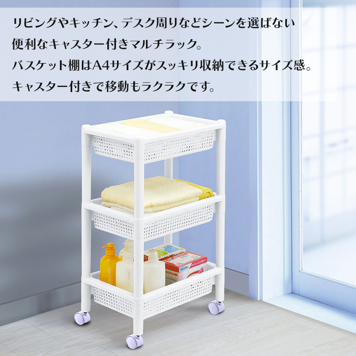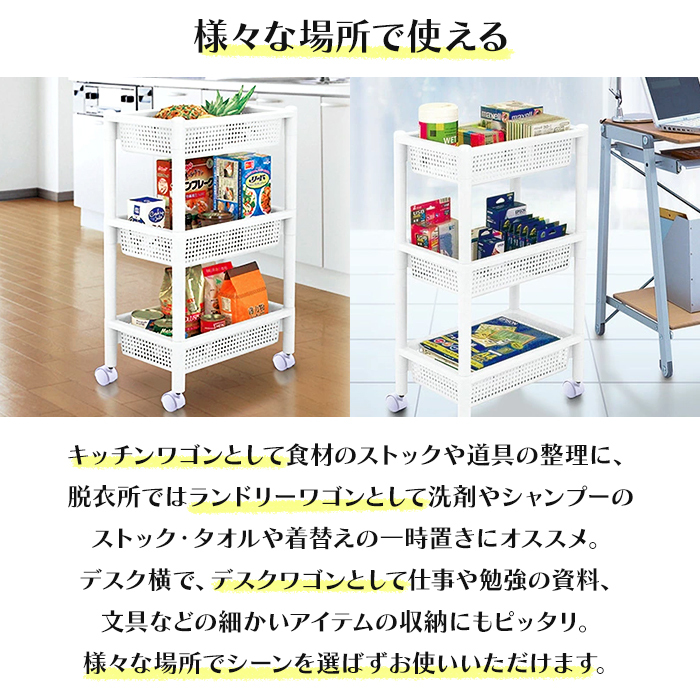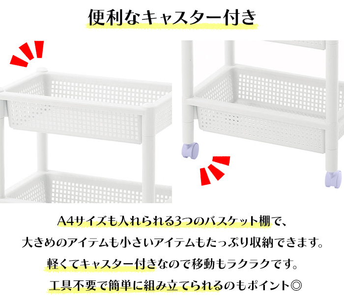 システムバスケット 3段 キッチンワゴン デスクワゴン キッチン デスク キャスター付き FUD-8649