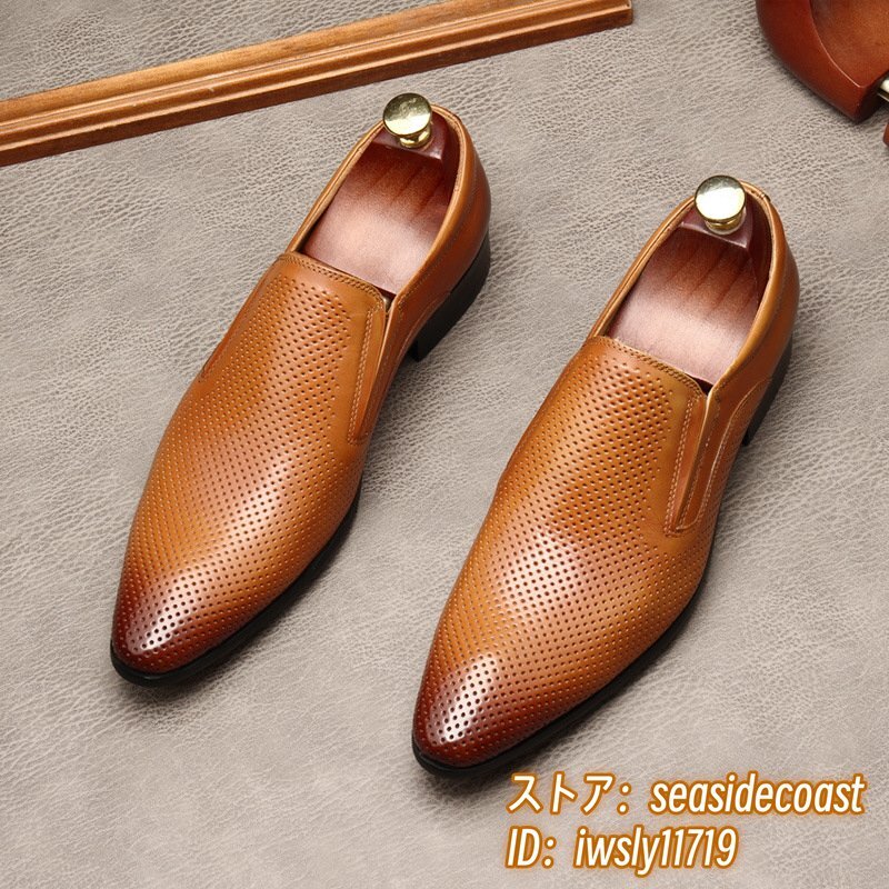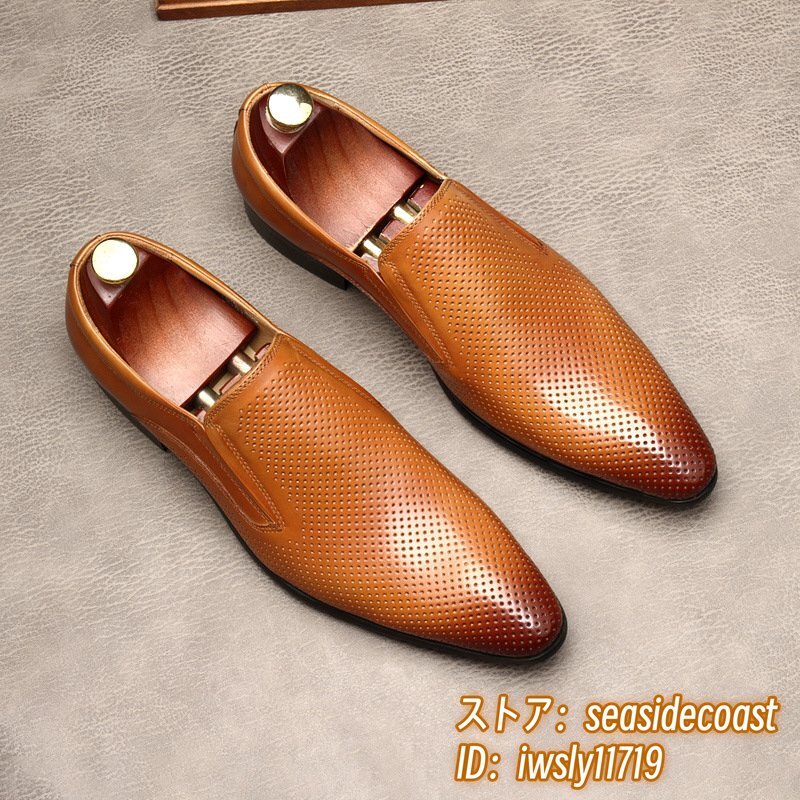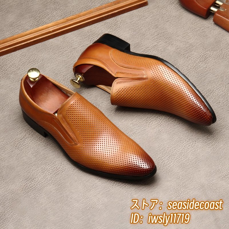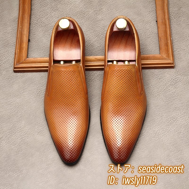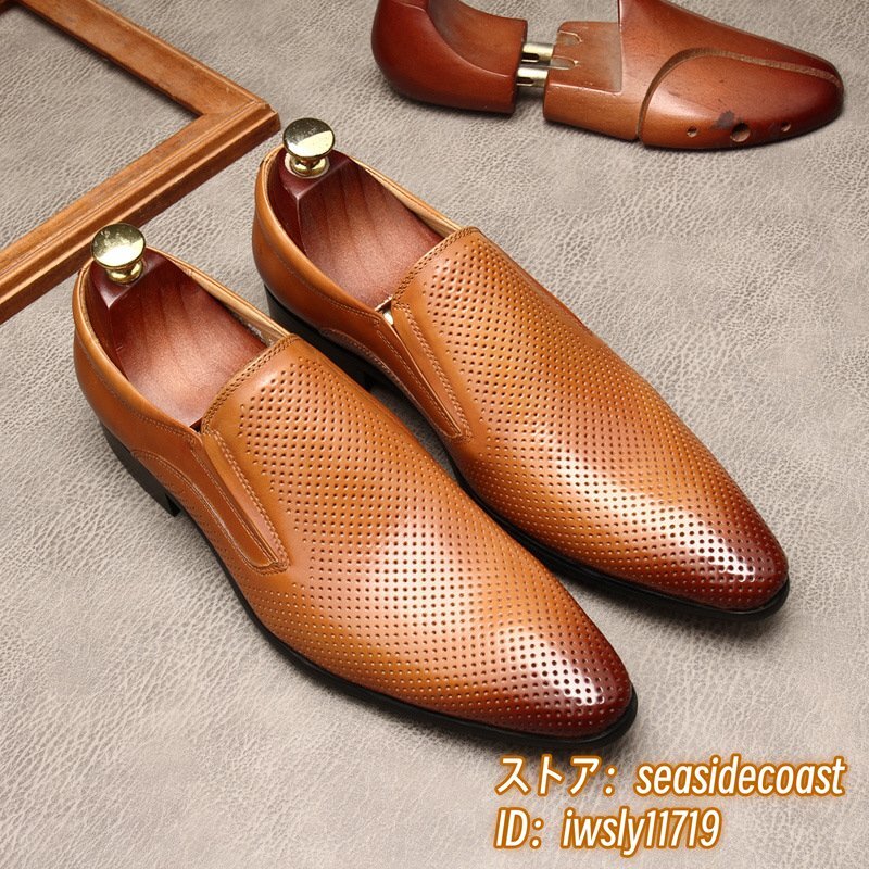 定価10万★ビジネスシューズ 本革レザーシューズ メンズ 超希少 職人手作り 最高級牛革 ローファー紳士靴 フォーマル 革靴 ブラウン 24.5cm