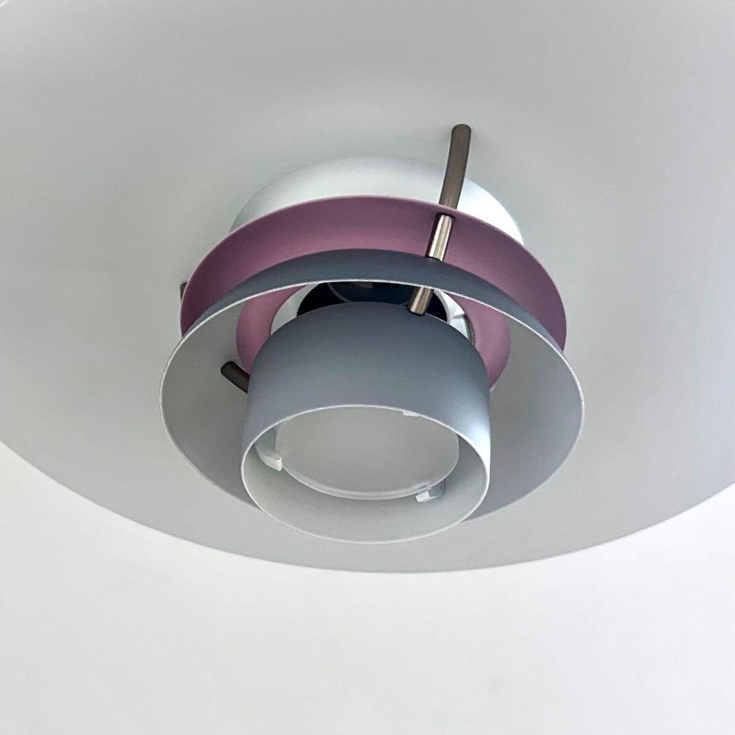 デンマークを代表する建築家でありデザイナー、ポール・ヘニングセンの頭文字をとった「PH5」は1958年に発表されて以来、長年にわたりロングセラーとなっている名作照明です。100%グレアフリーの光を提供するそのデザインは、大部分の光を下方に向ける3枚シェードの光の反射原理に基づいています。下方と側面に光を放ち、それにより器具自体も照らします。