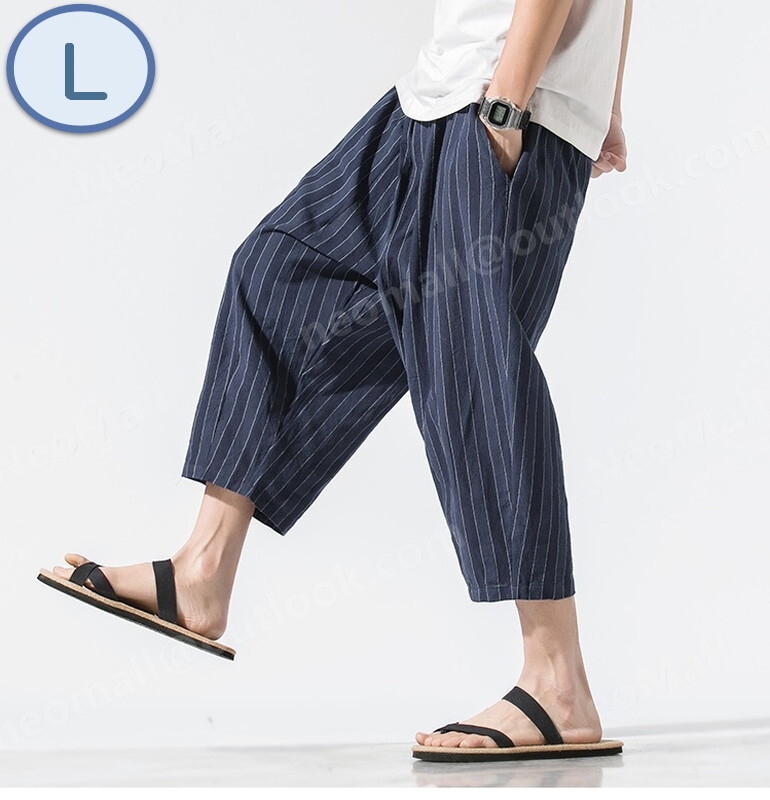 1スタ ☆ メンズ 七分丈 パンツ ネイビー サイズL【091】