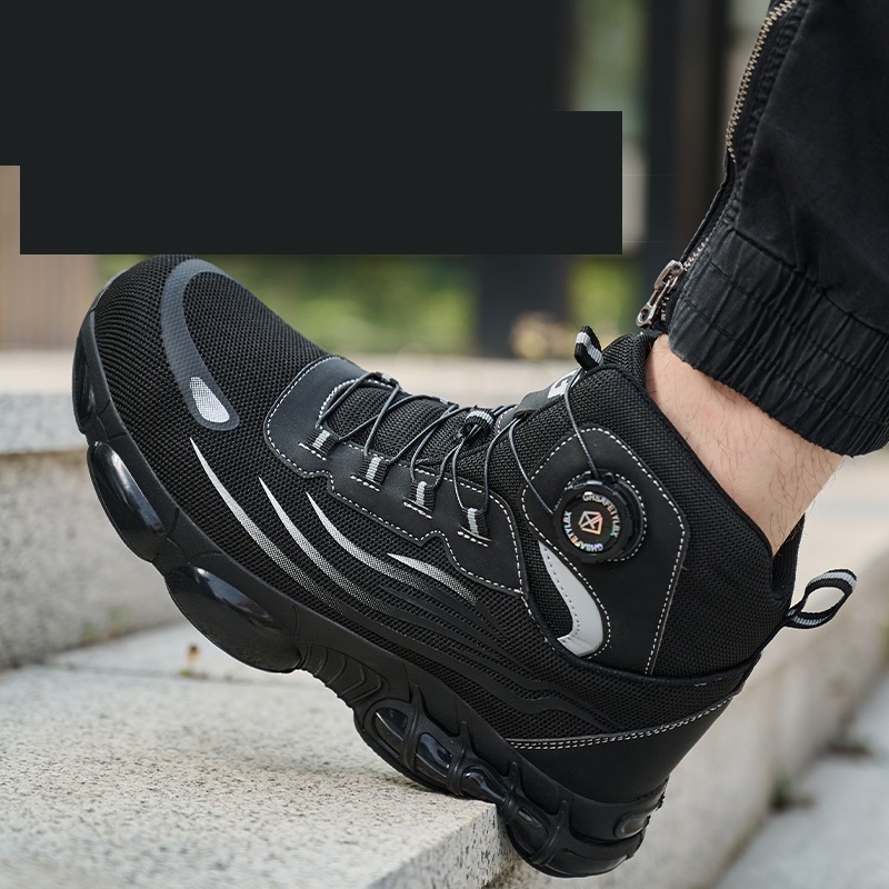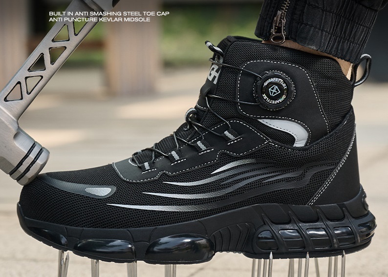 安全靴 ハイカット 作業靴 ダイヤル式 通気性 軽量 作業ブーツ 鋼鉄先芯入り 耐滑 耐摩耗 黒 サイズ:25.5cm