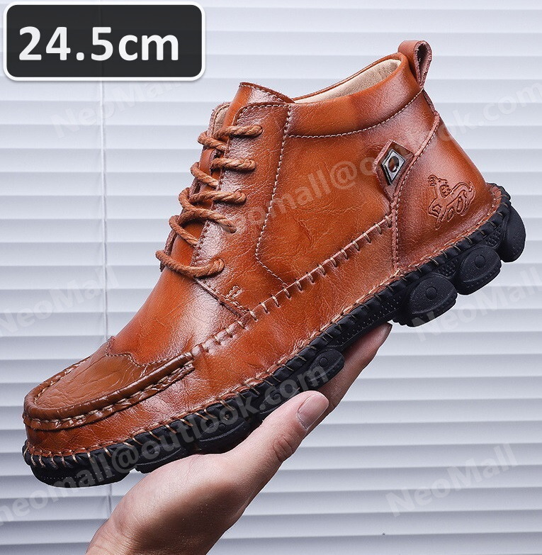 牛革 メンズ シュートブーツ ブラウン サイズ 24.5cm 革靴 靴 カジュアル 屈曲性 通勤 軽量 インポート品【n021】