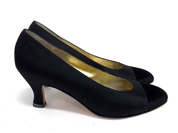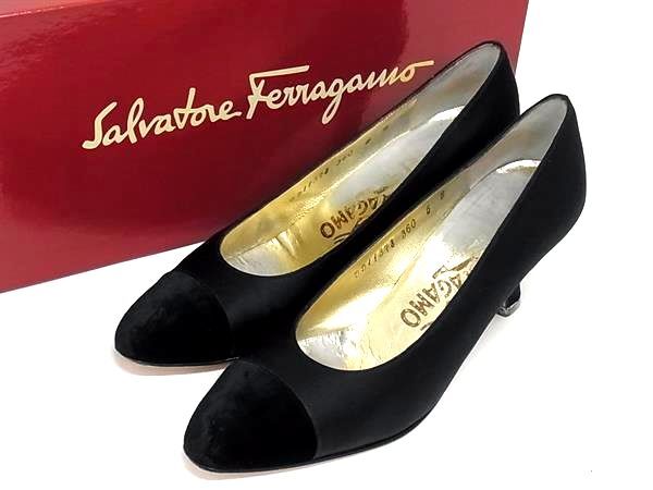 Salvatore Ferragamo フェラガモ サテン ヒール パンプス 表記サイズ5 (約22.5cm) 靴 シューズ レディース ブラック系 DK0289