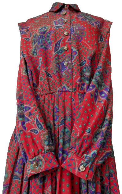 古着♪レトロ・Vintage赤ペイズリー柄プリーツワンピ♪70s60s70年代60年代ヴィンテージUSA製昭和モダン大きめ衣装長袖秋冬アンティーク個性