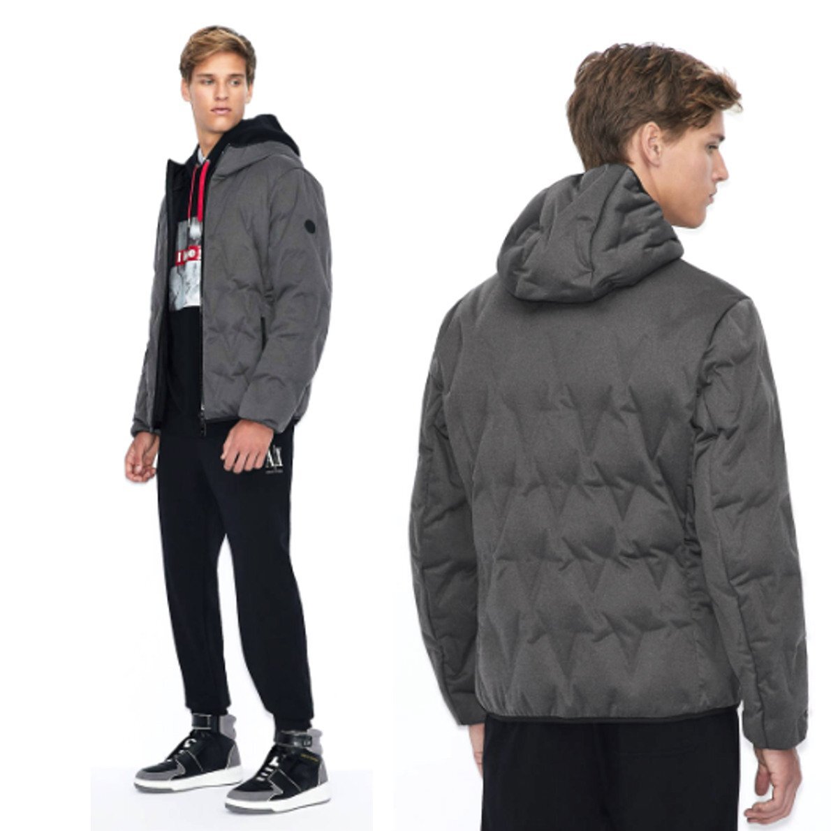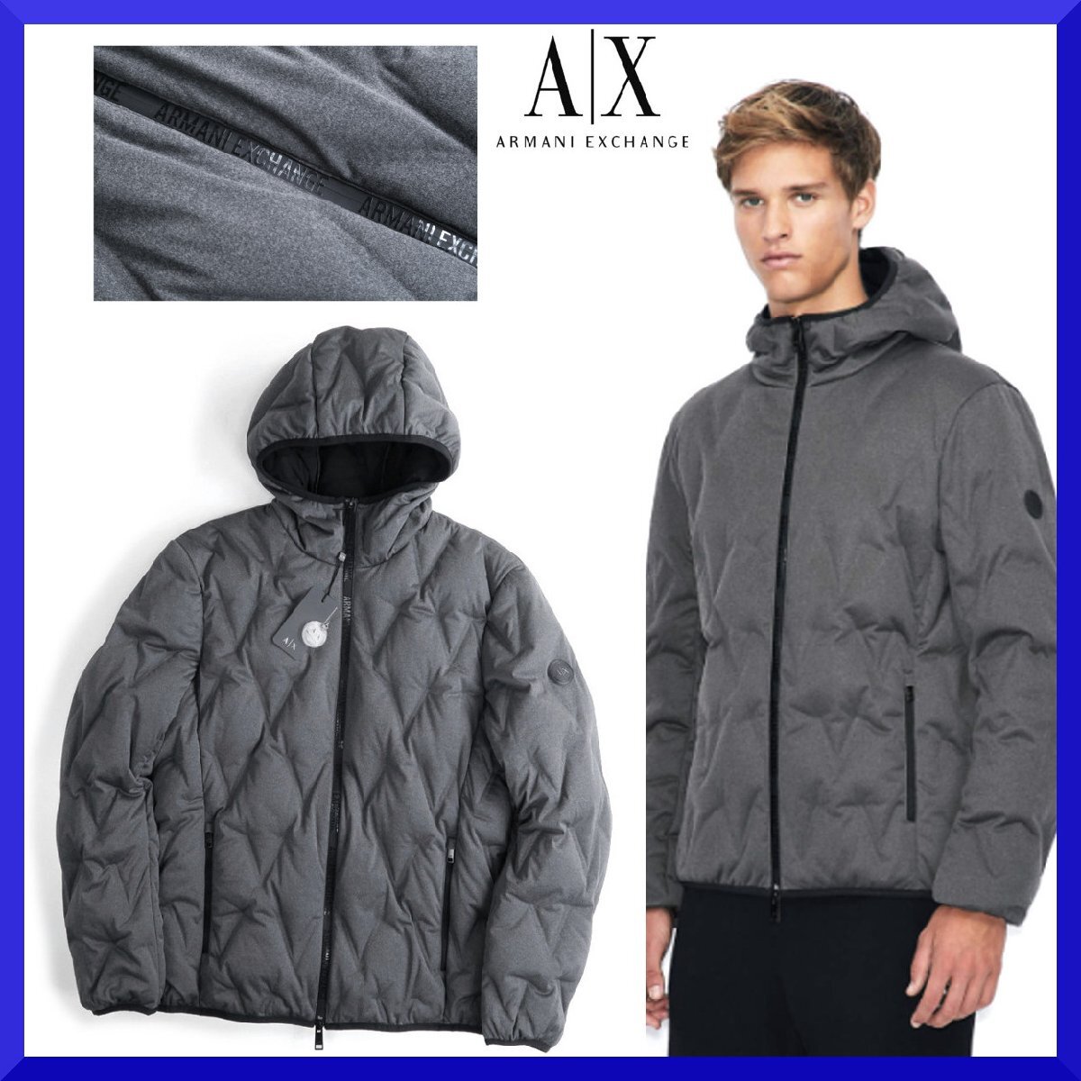 【商品名】ARMANI EXCHANGE フードダウンジャケットブルゾン/ダークグレー系/メンズ/サイズ:S (日本サイズSくらい)/新品未使用