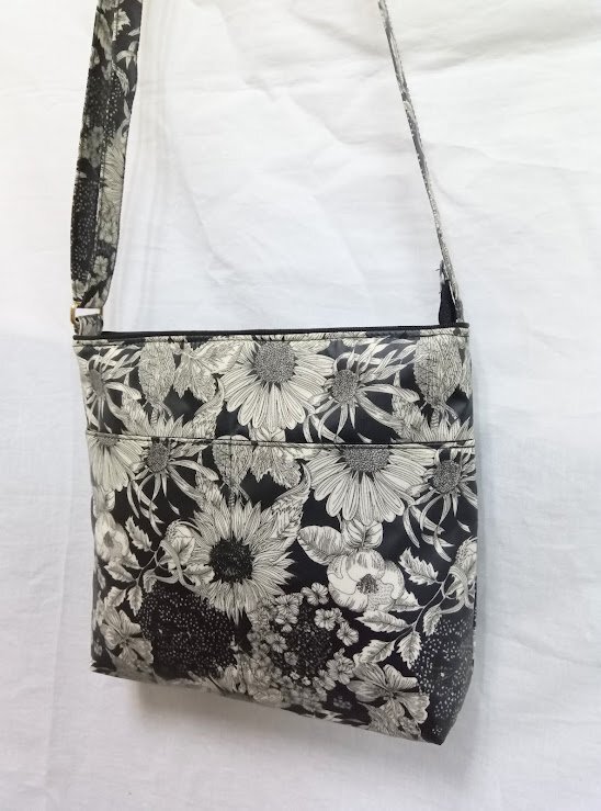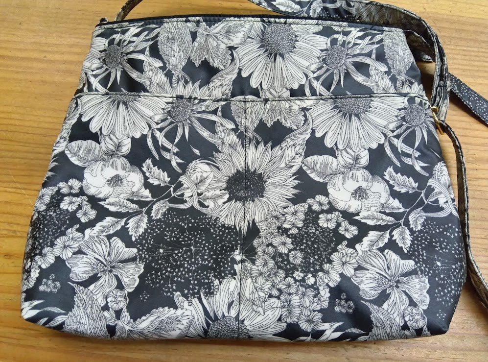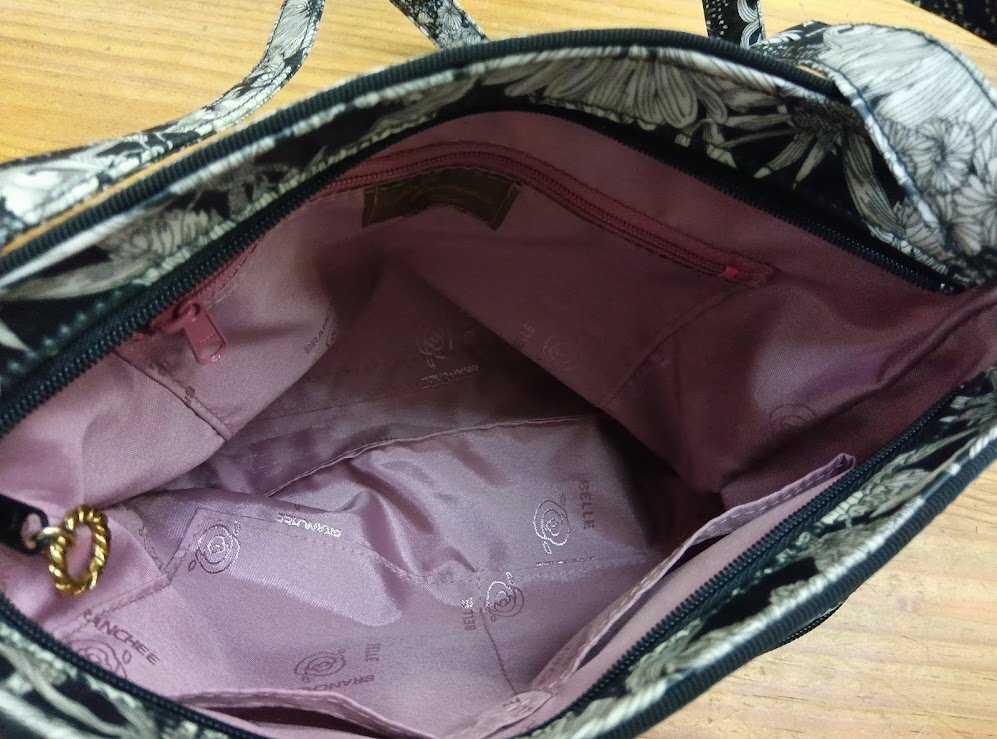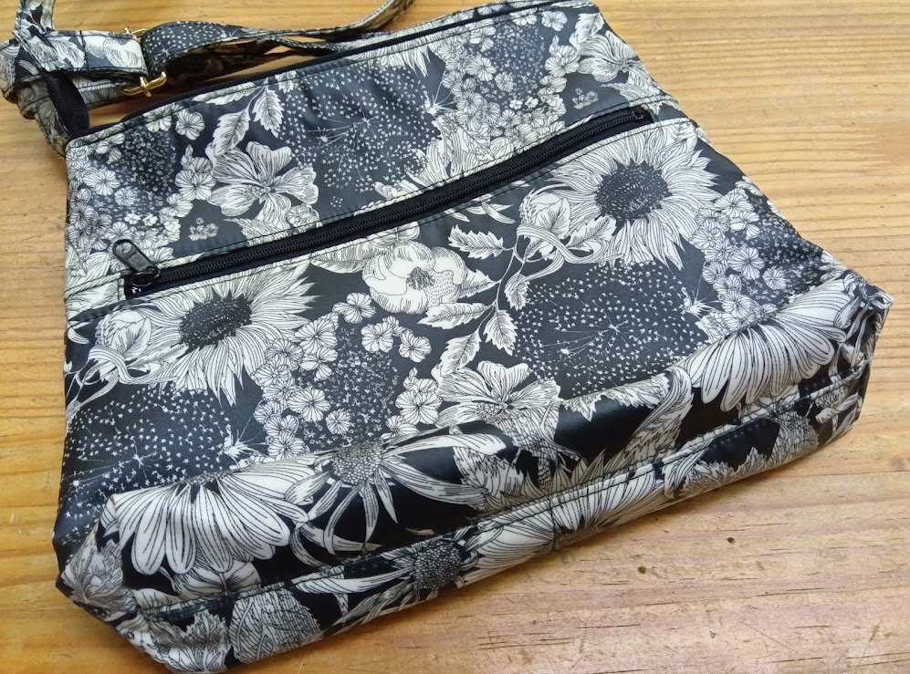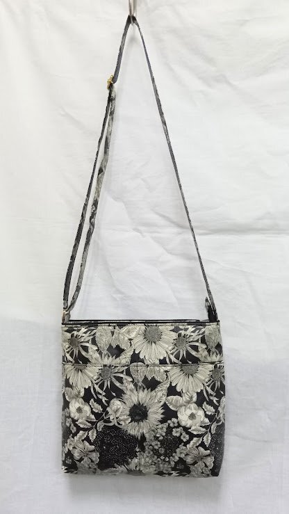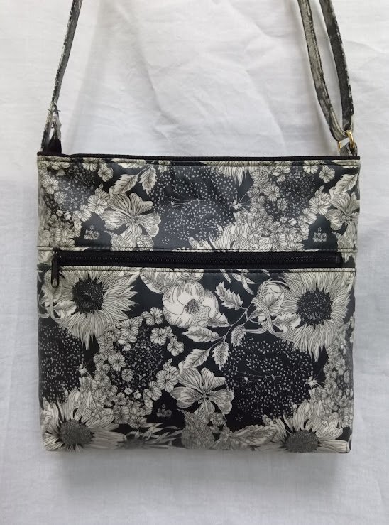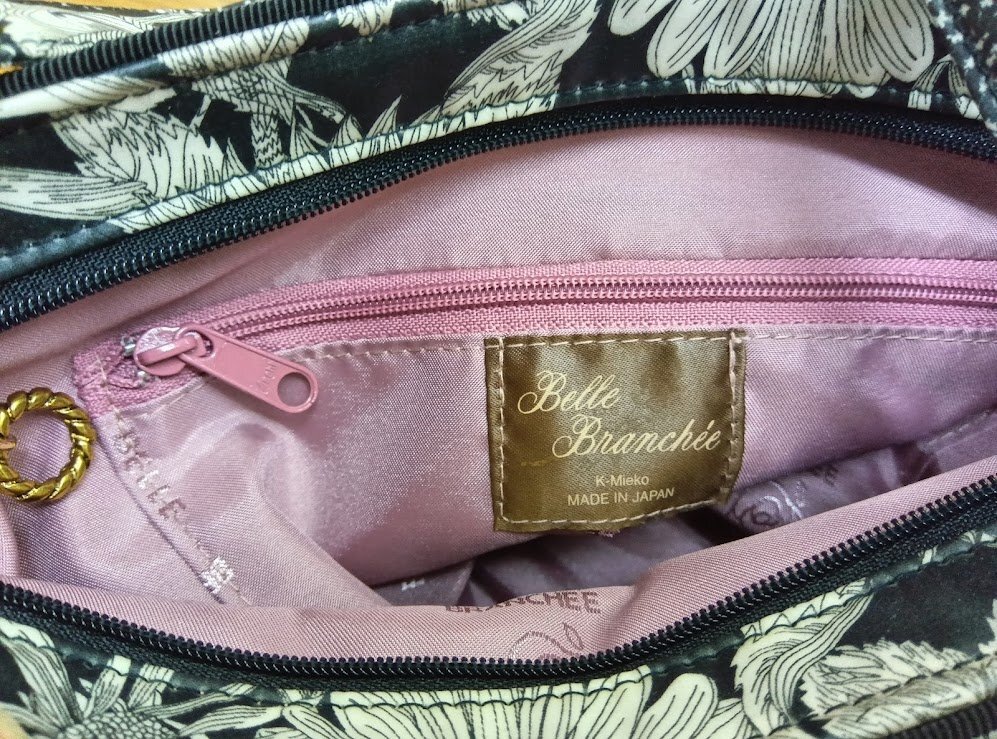 ベル・ブランシェ☆リバティプリント ショルダーバッグ 価格:14,300円 スイム・ダンクレア 黒白 花柄 コーティングコットン Belle Branchee【中古】Y251001006