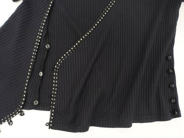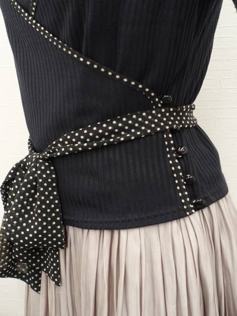 洗える半袖カシュクールカーディガン+ノースリーブカットソー 春夏ニットアンサンブル2点セット 2 ネイビー ストライプ柄&ブラック×ホワイト ドット柄 【メール便可】