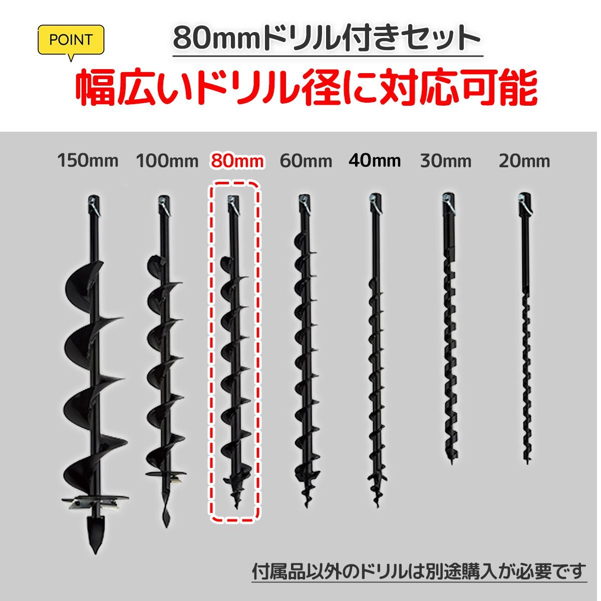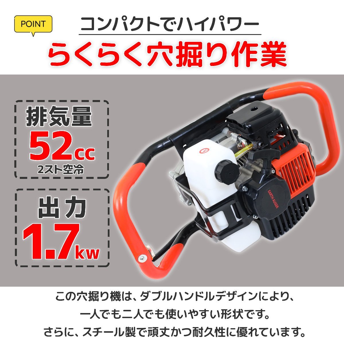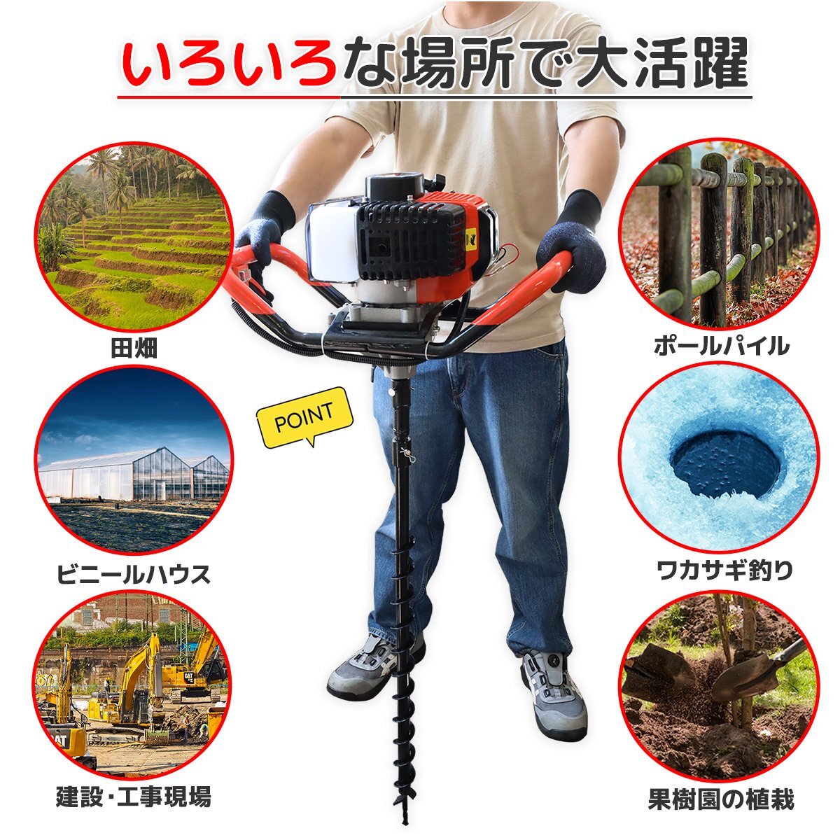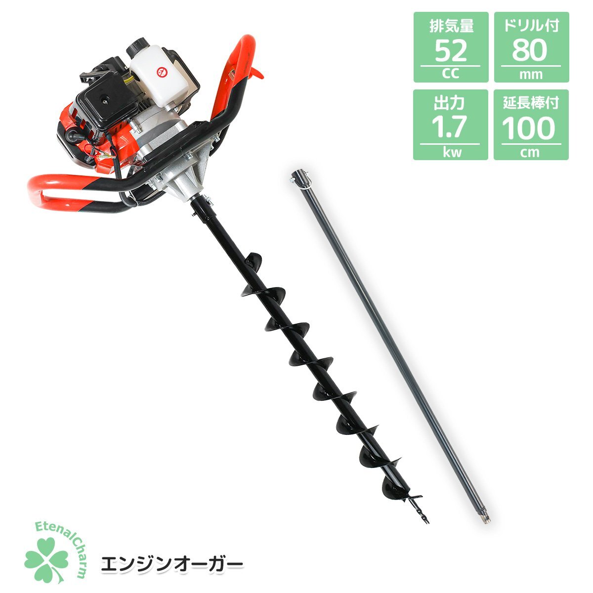 ◆送料無料◆ エンジン式 穴掘り機 排気量52cc 径80mmアースドリル&1m延長棒付 / コードレス 穴掘り機 杭穴 杭打ち 下穴に