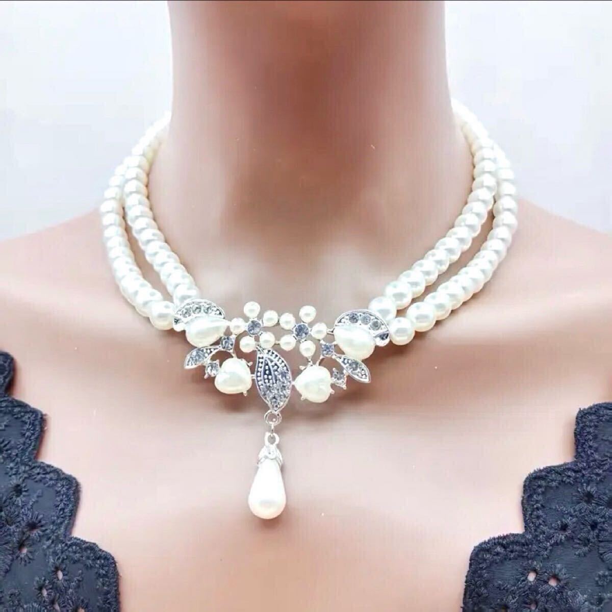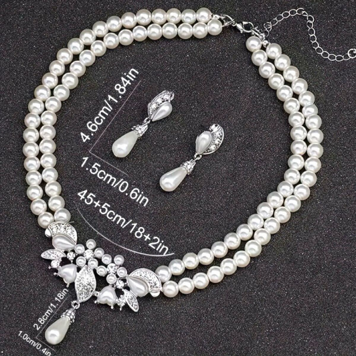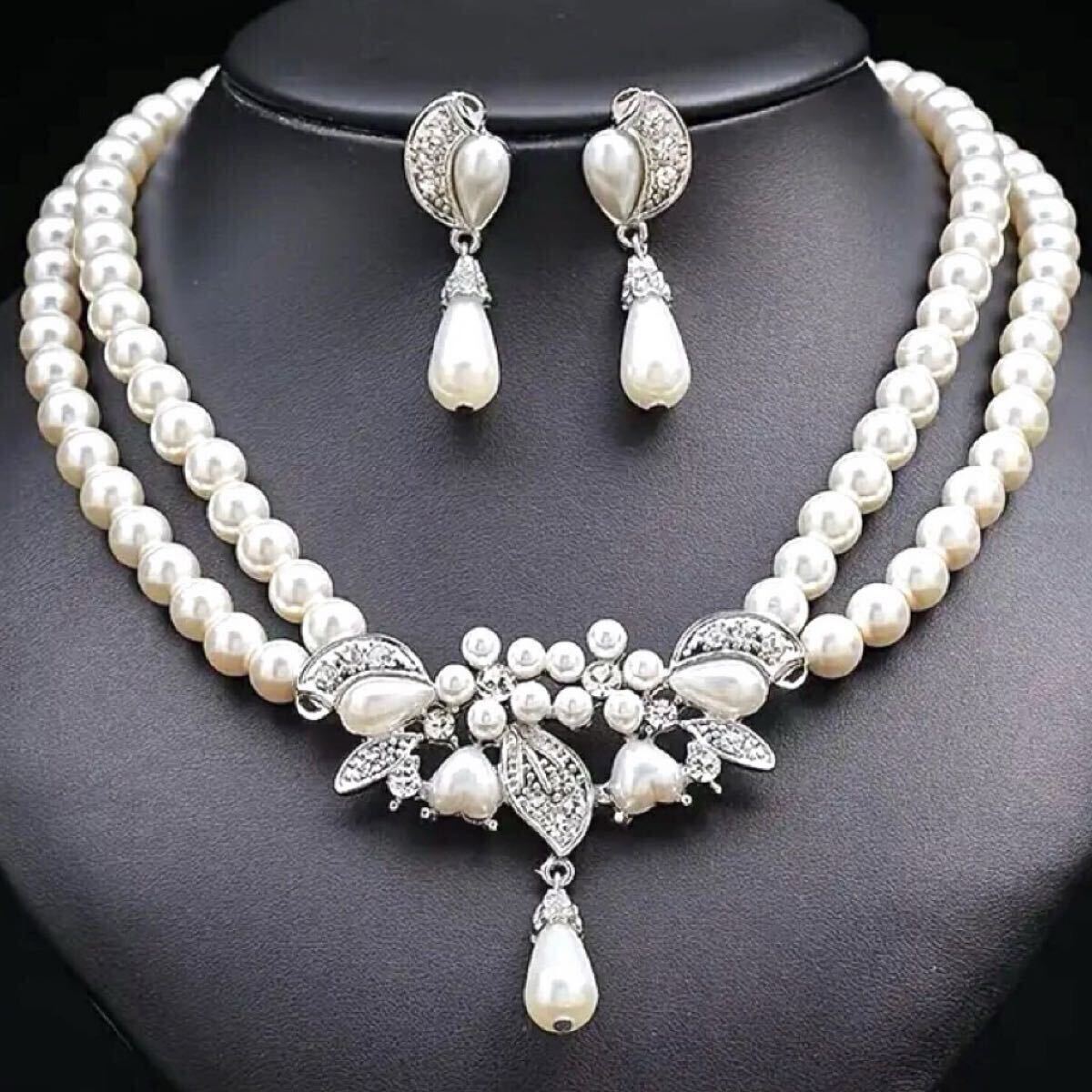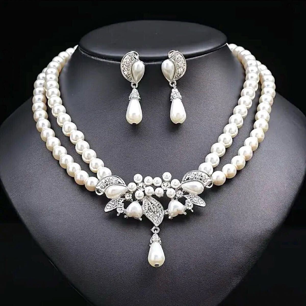 ヨーロッパ風 フェイクパール調 ラインストーン イヤリング&ネックレスの2点セット◎