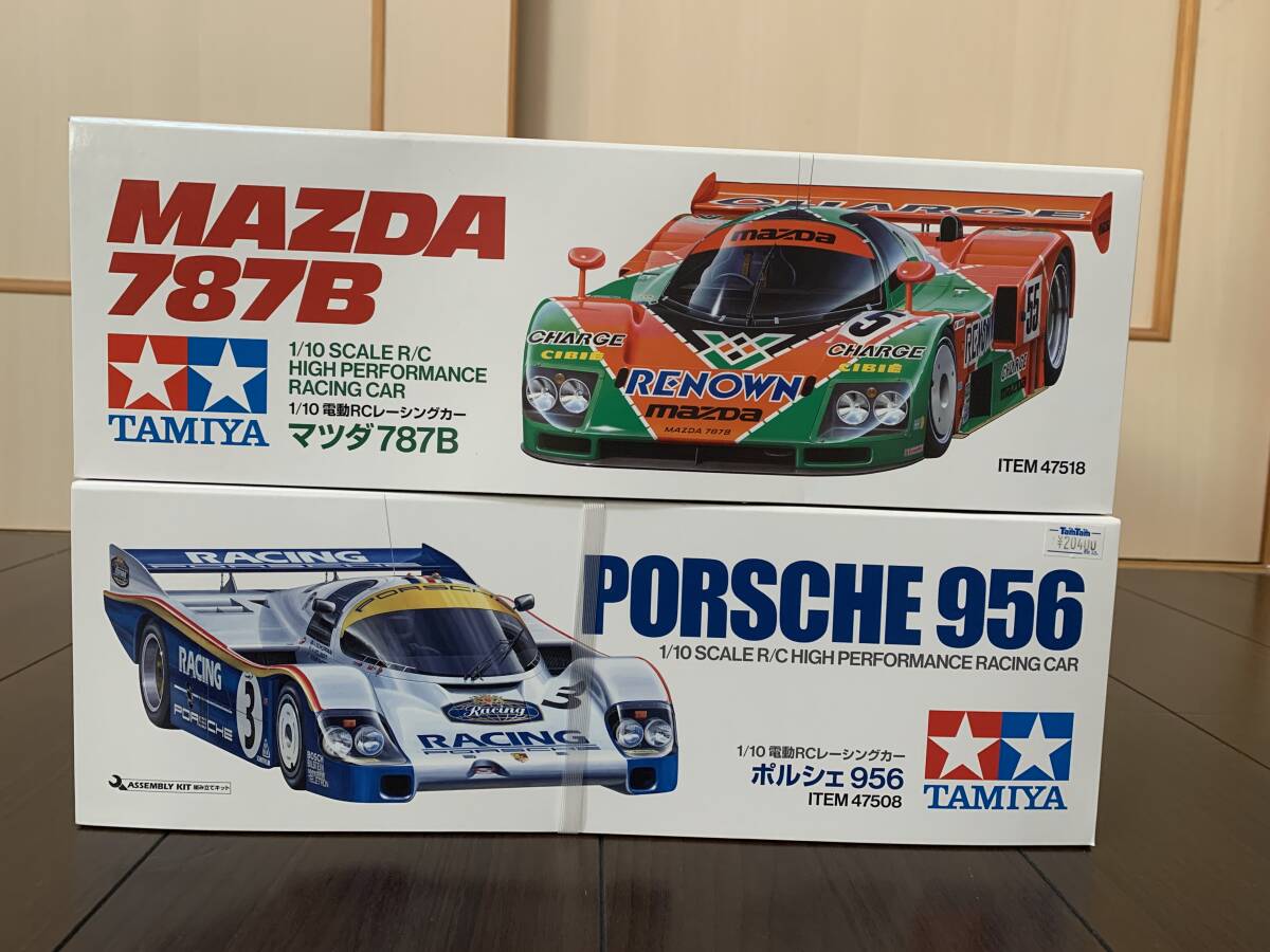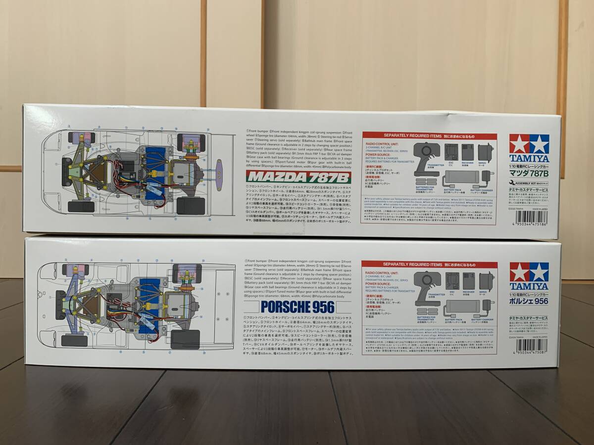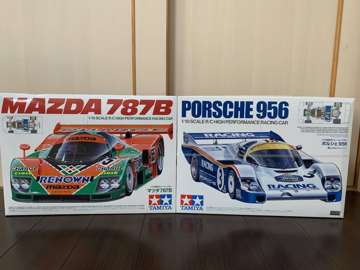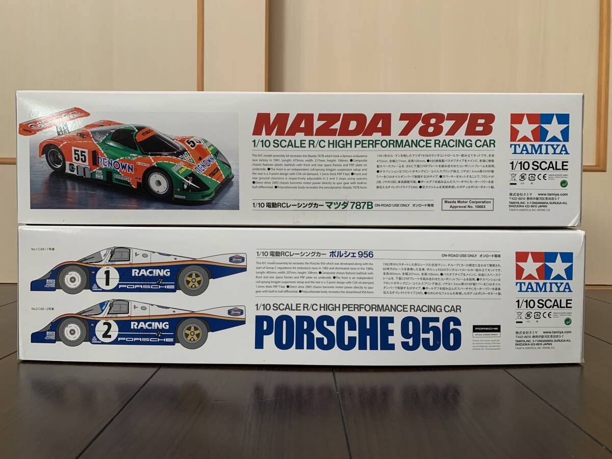 【未開封2台セット】タミヤ 1/10RC マツダ787B(No47518),ポルシェ 956(No47508)787B用補填シール、バックミラー、カーボンシャフト付属です。