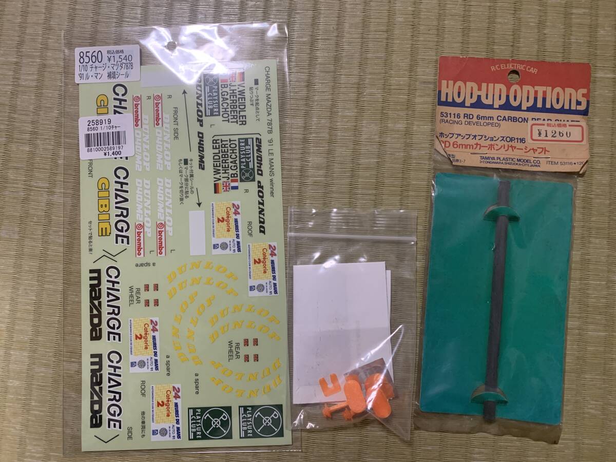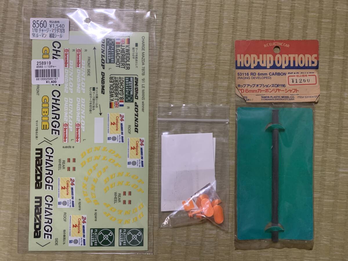 【未開封2台セット】タミヤ 1/10 マツダ787B(No47518),ポルシェ 956(No47508)787B用補填シール、バックミラー、カーボンシャフト付属