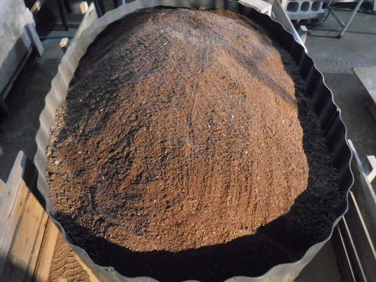 ・直径1メートル、1000リットルの巨大な微生物菌床ブロックを粉砕加工処理。