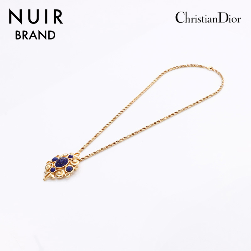 極美品 クリスチャンディオール Christian Dior ストーン ブローチ ネックレス ゴールド WS7931