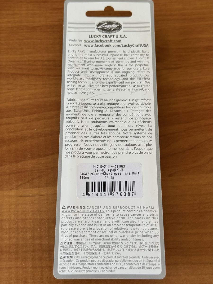 ラッキークラフト トネプロップジャーク 110RT ボーン素材【新品未使用】チャートリュース多根ベイトの出品です。