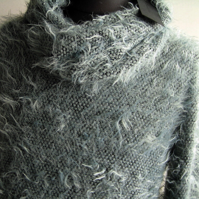 ■細い糸と極細繊維のヘアリーヤーンをザックリした組織で編み込むことで豊かな表情と凹凸感のある大変軽い仕上がりとなっています