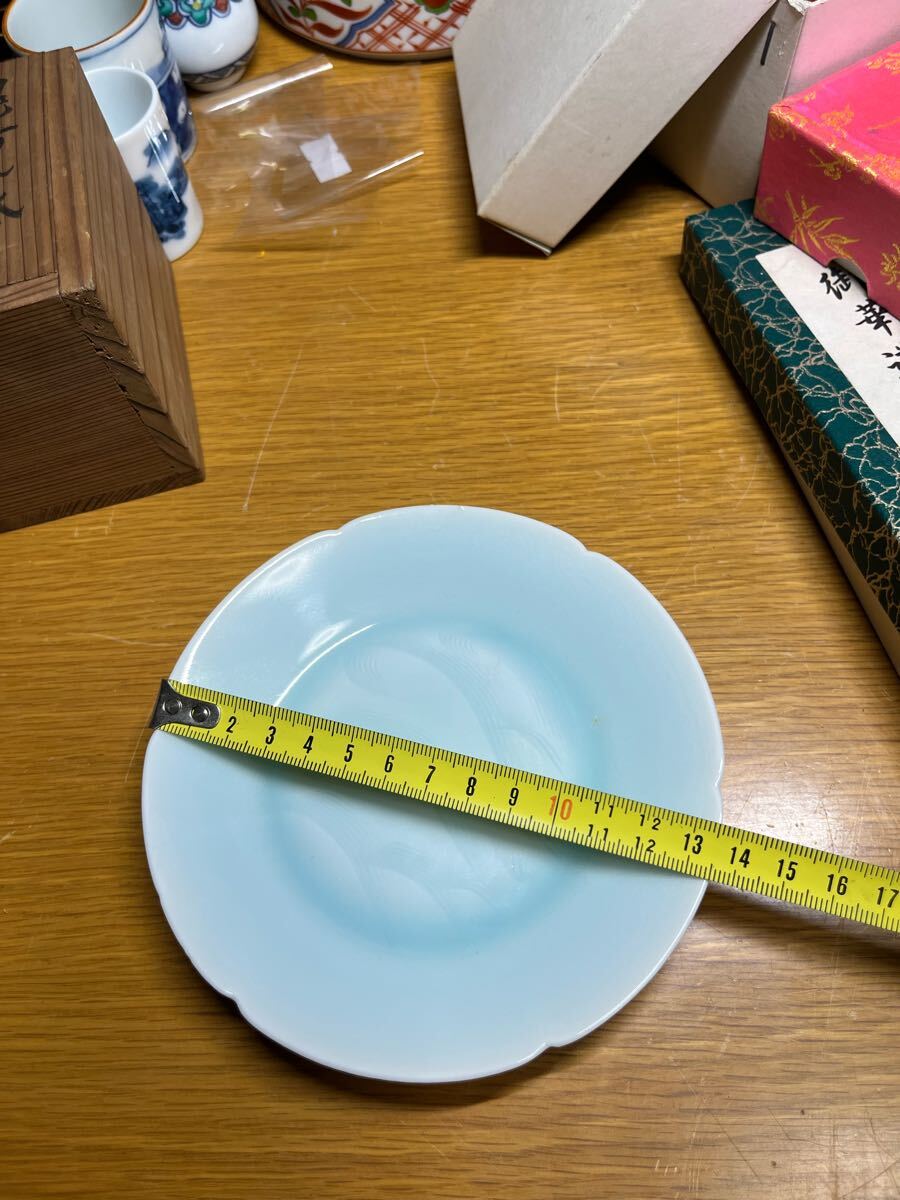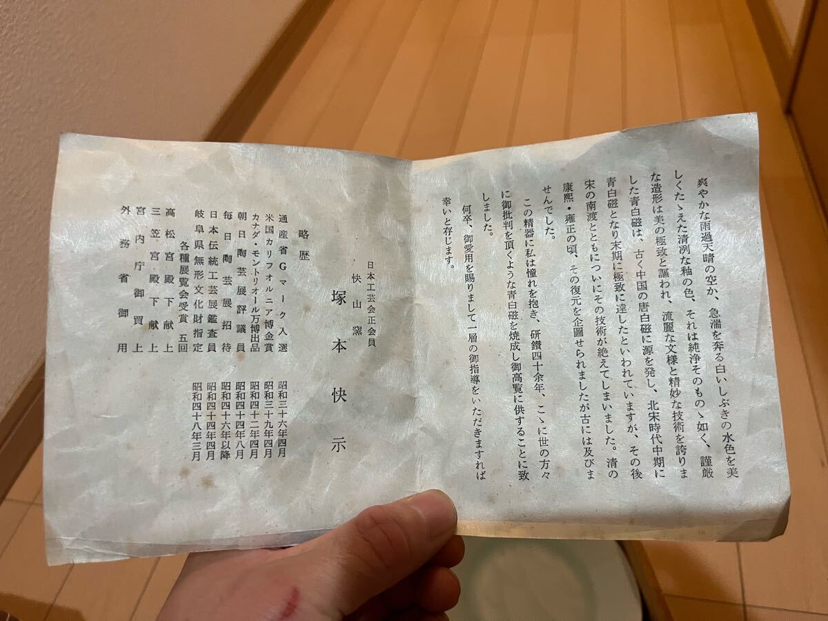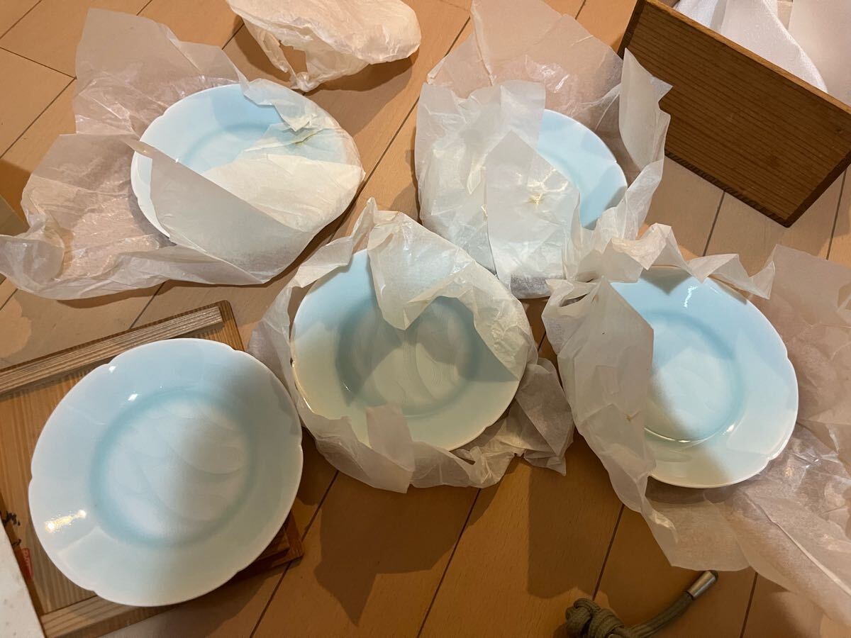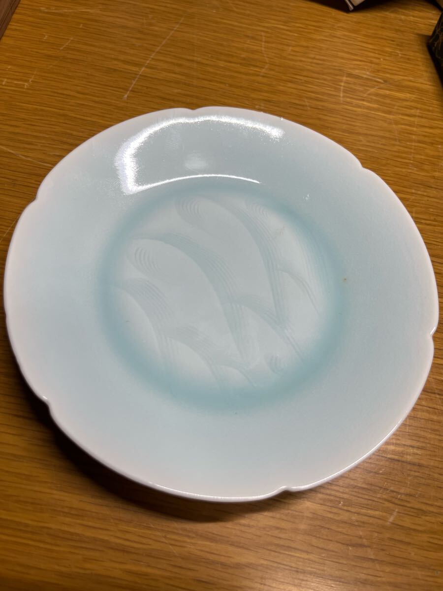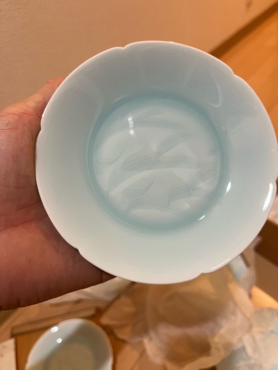 人間国宝 塚本快山造 青白磁 涛 中皿 5枚