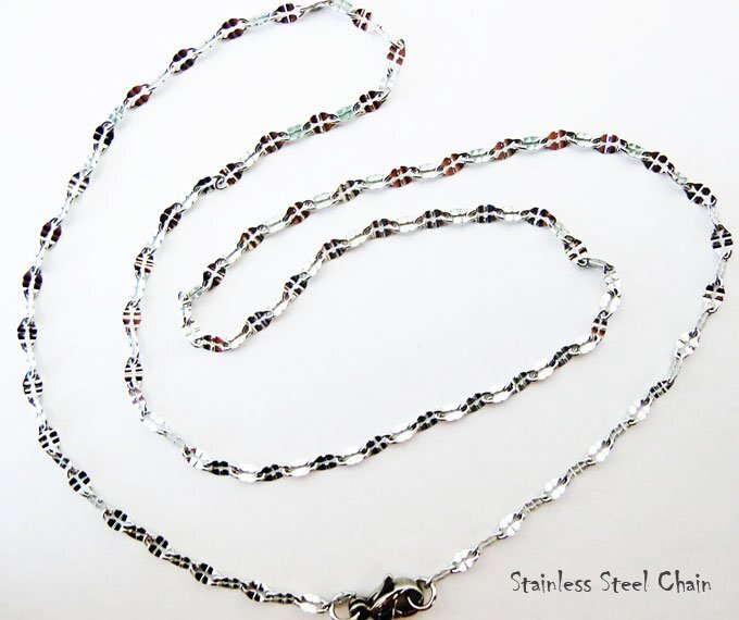 2.4mm幅80cm  リーフチェーン ステンレスロングネックレス チェーン
