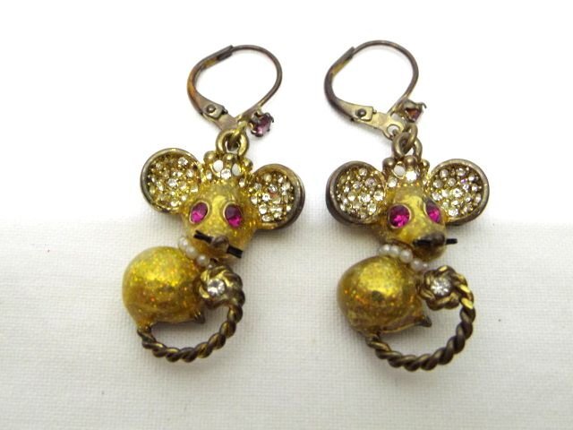 ビンテージ★マウス◎ネズミ/ピアス/ラインストーン/ゴールド