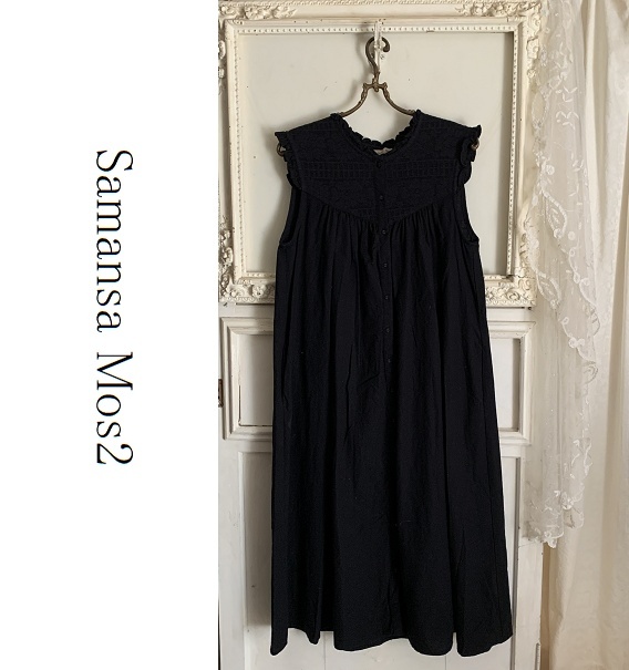 サマンサモスモス Samansa Mos2 フィレレース 薔薇 ノースリーブ ワンピース ふんわりワンピース 黒ブラック  SM2