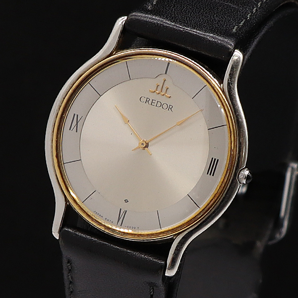 1円 稼働 セイコー クレドール 5A74-0020 803599 K18×SS QZ シルバー文字盤 メンズ腕時計 0023100 10ERT KMR