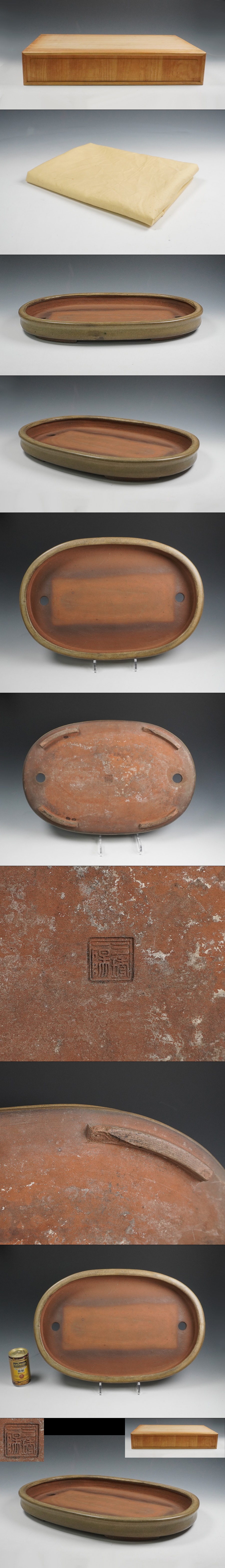 三琇一陽 作(神田恒一) 白交趾 樹鉢 盆栽鉢水盤 箱付 保証品 | ||||