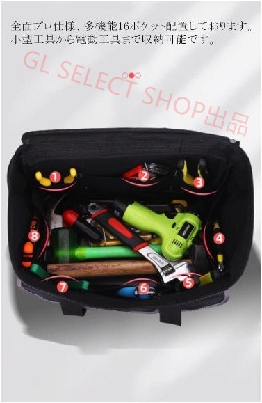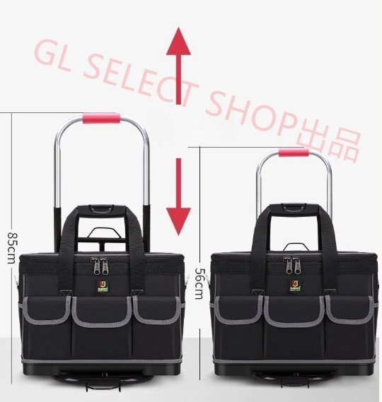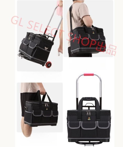ツールキャリーバック 3way 肩掛け キャスター付き 16ポケット 工具収納 工具 伸縮ハンドル 自立 大容量 建築 大工 防水 運搬用 20inch