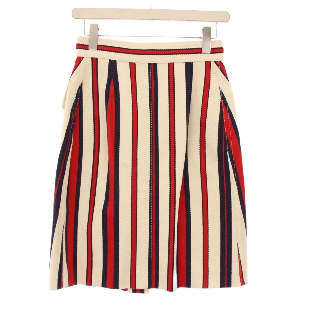 グッチ GUCCI 台形スカート ひざ丈 コットン GGボタン ストライプ 38 ベージュ 519436 /KH レディース