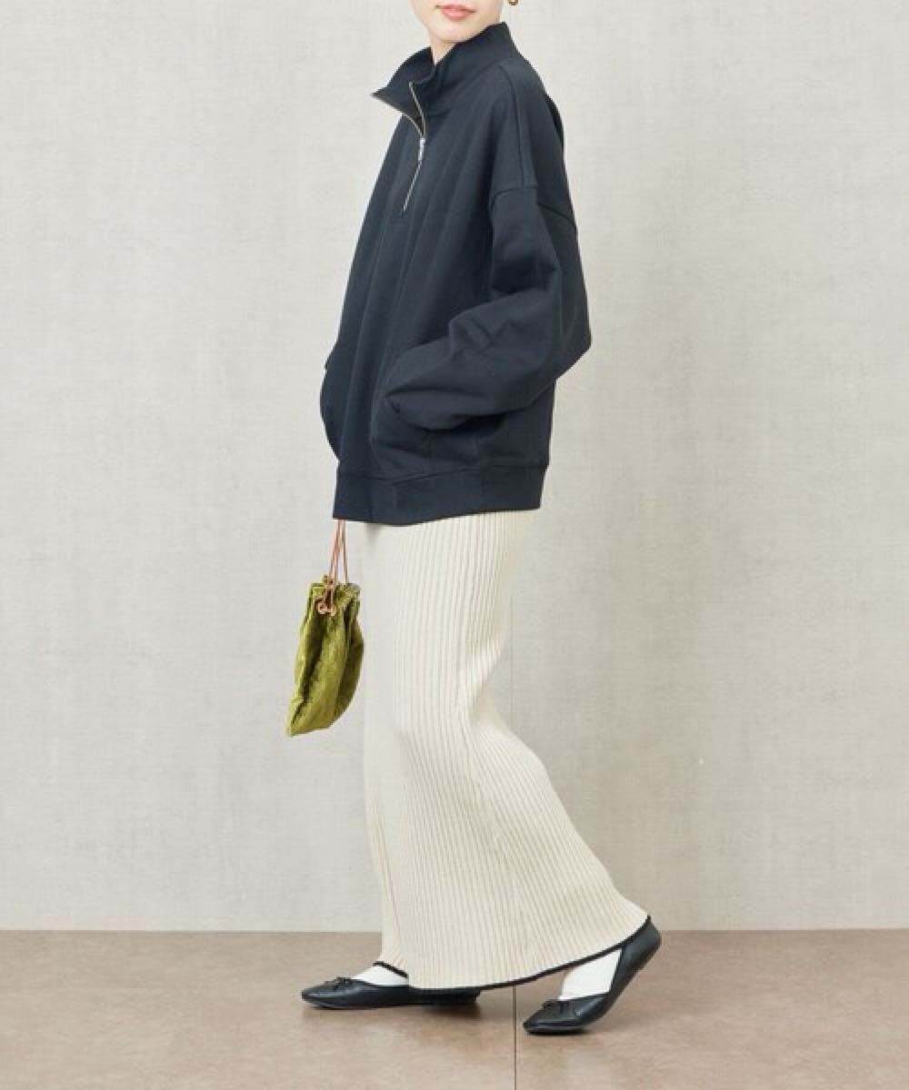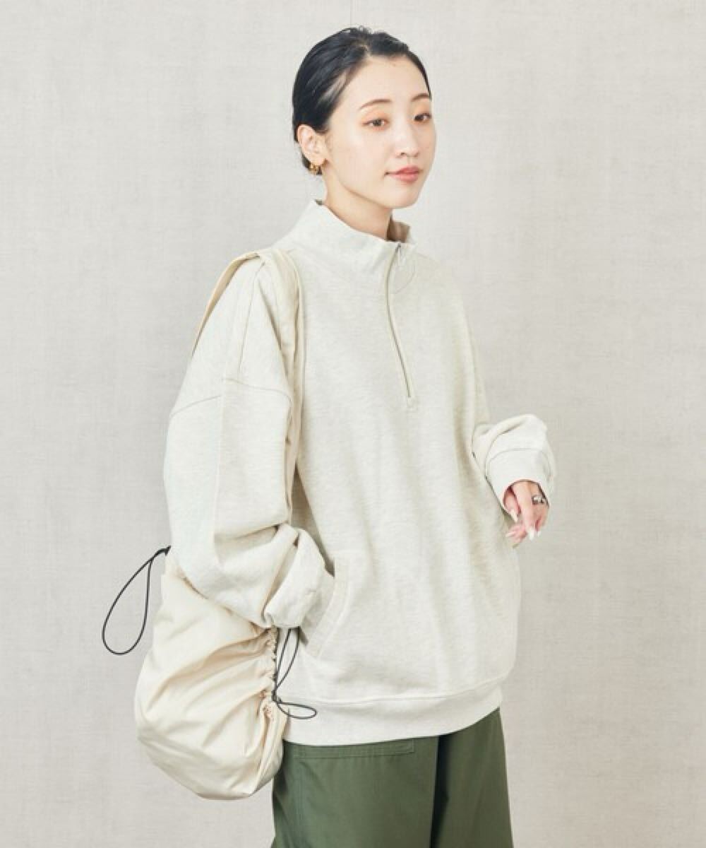 ●ハーフジップなので、インナーとのレイヤードも楽しみやすいアイテム