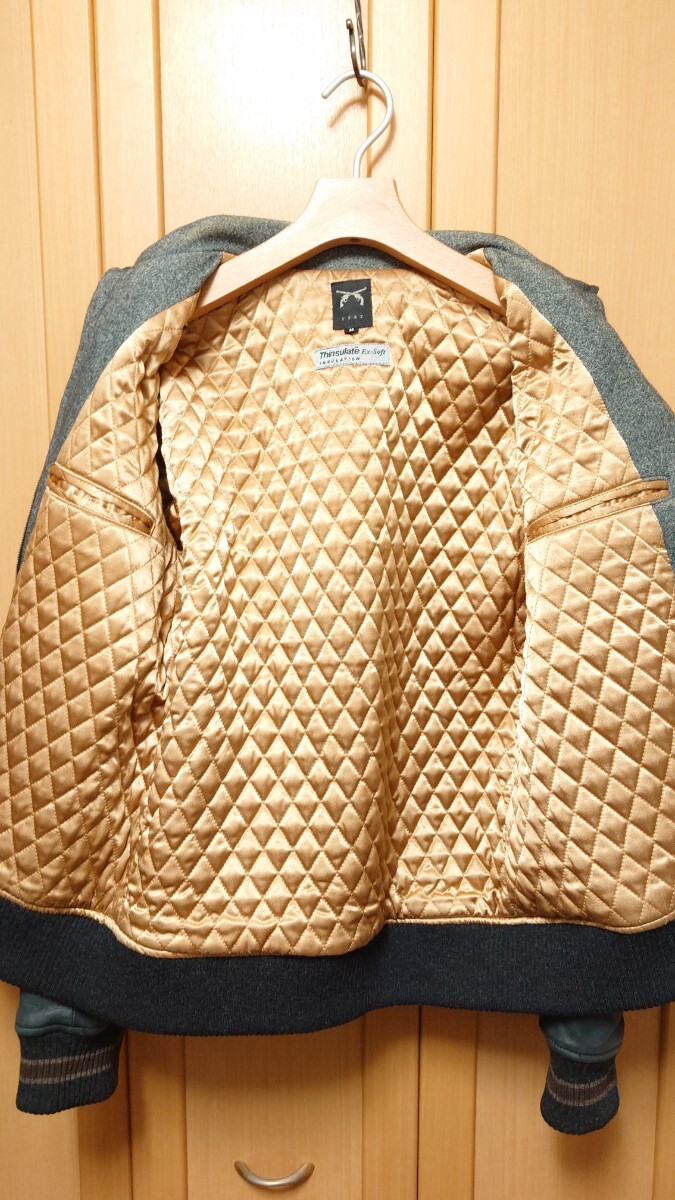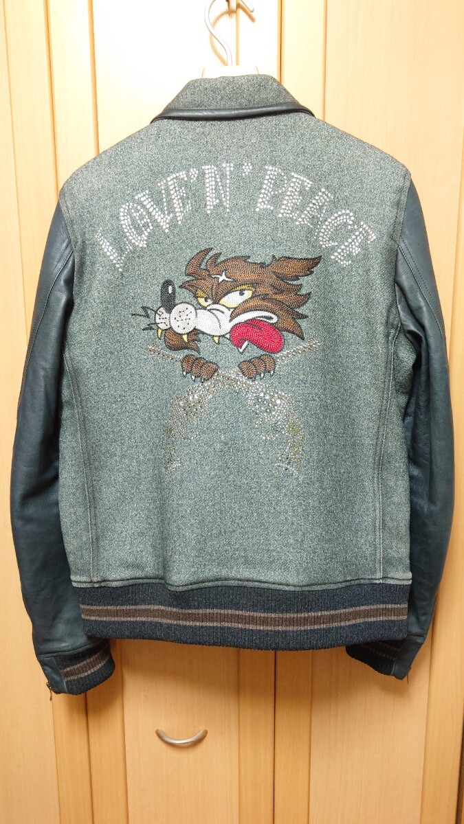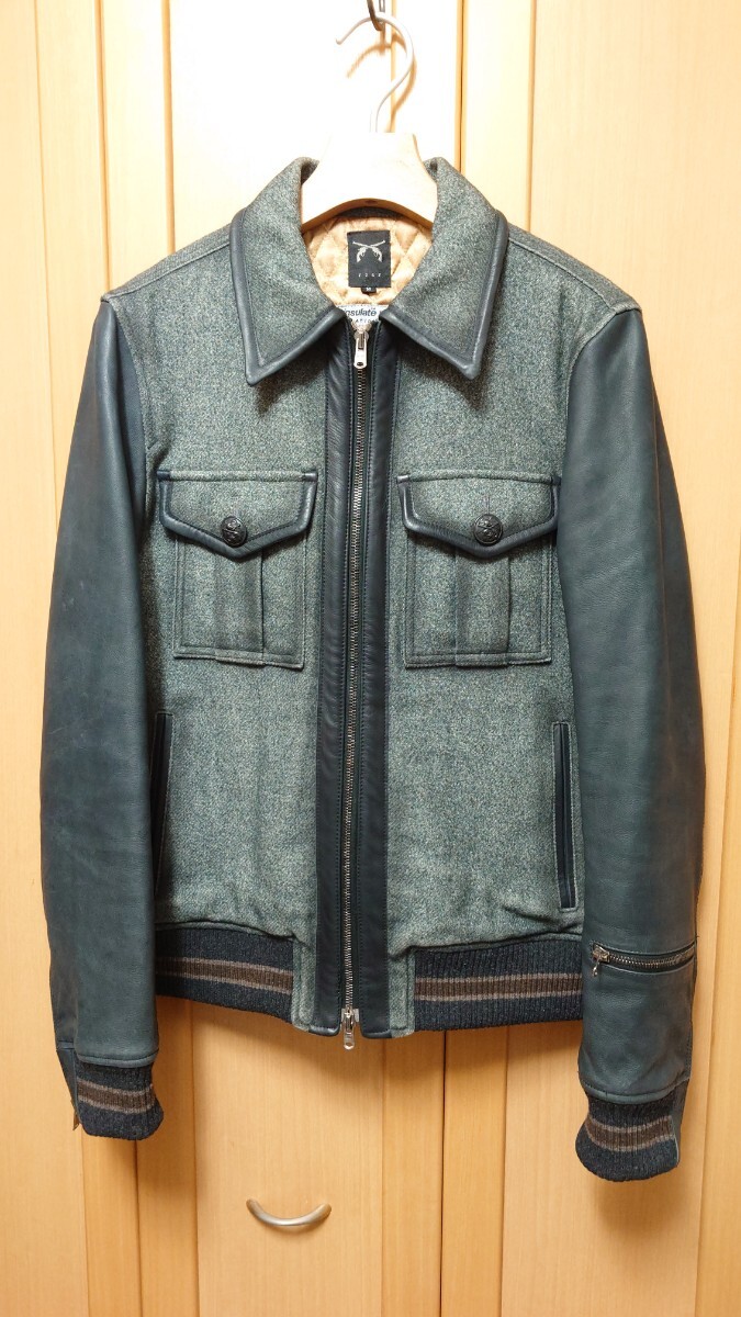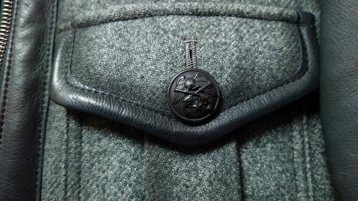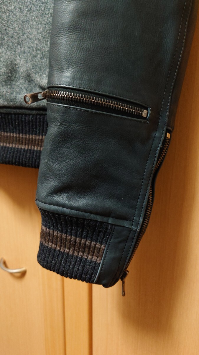 袖のレザー部分に薄いスレがあるのと襟の部分が若干変色しておりますが着用すれば目立たないと思います。