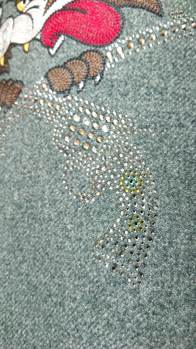 実家の整理をしている際に出て来た物で背面に刺繍とスワロフスキーによる装飾がされております。