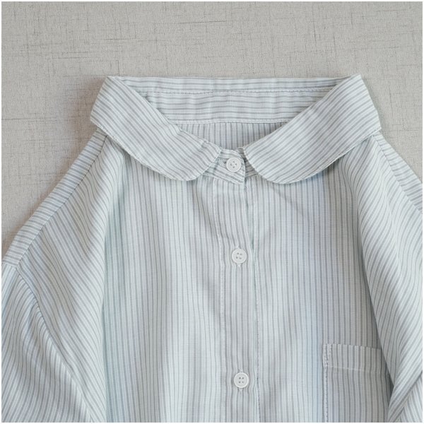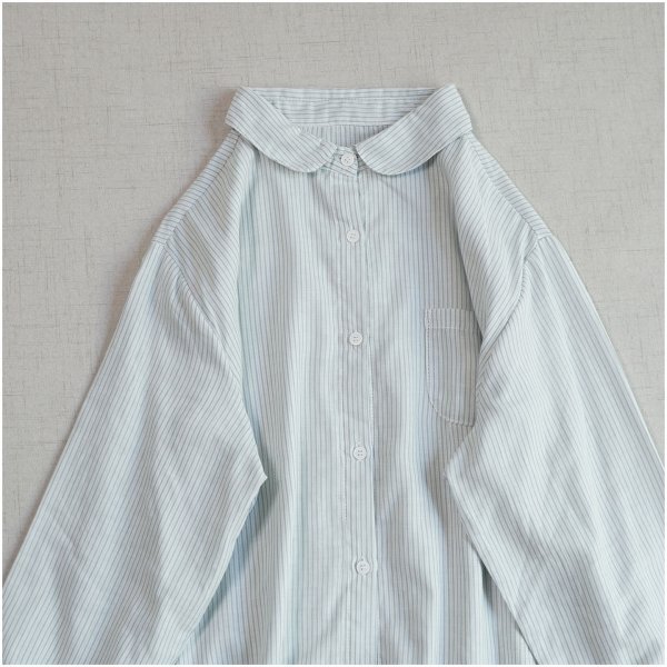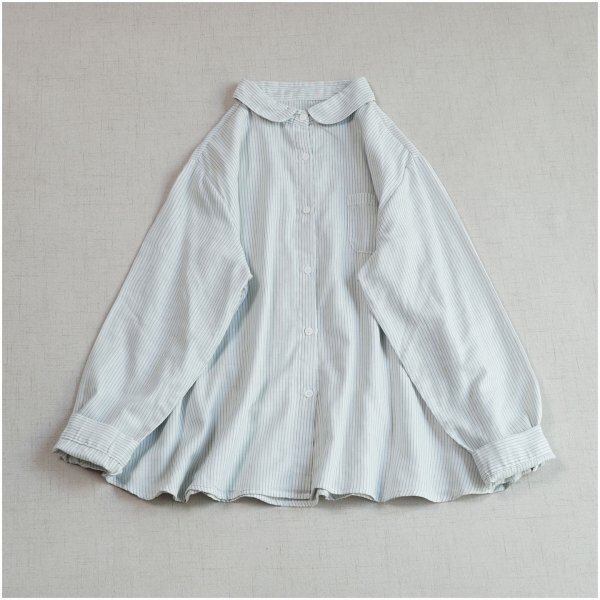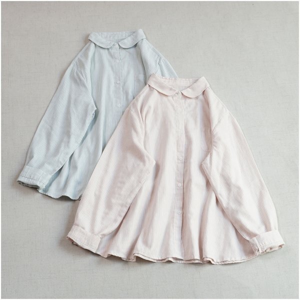 m 2510 チュニック トップス 上着 ダブルガーゼ ストライプ柄 綿100% 大人可愛 シャツ オシャレ フリーサイズ ブラウス前開け1