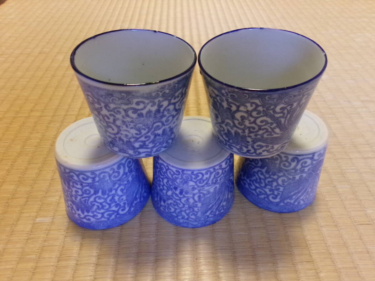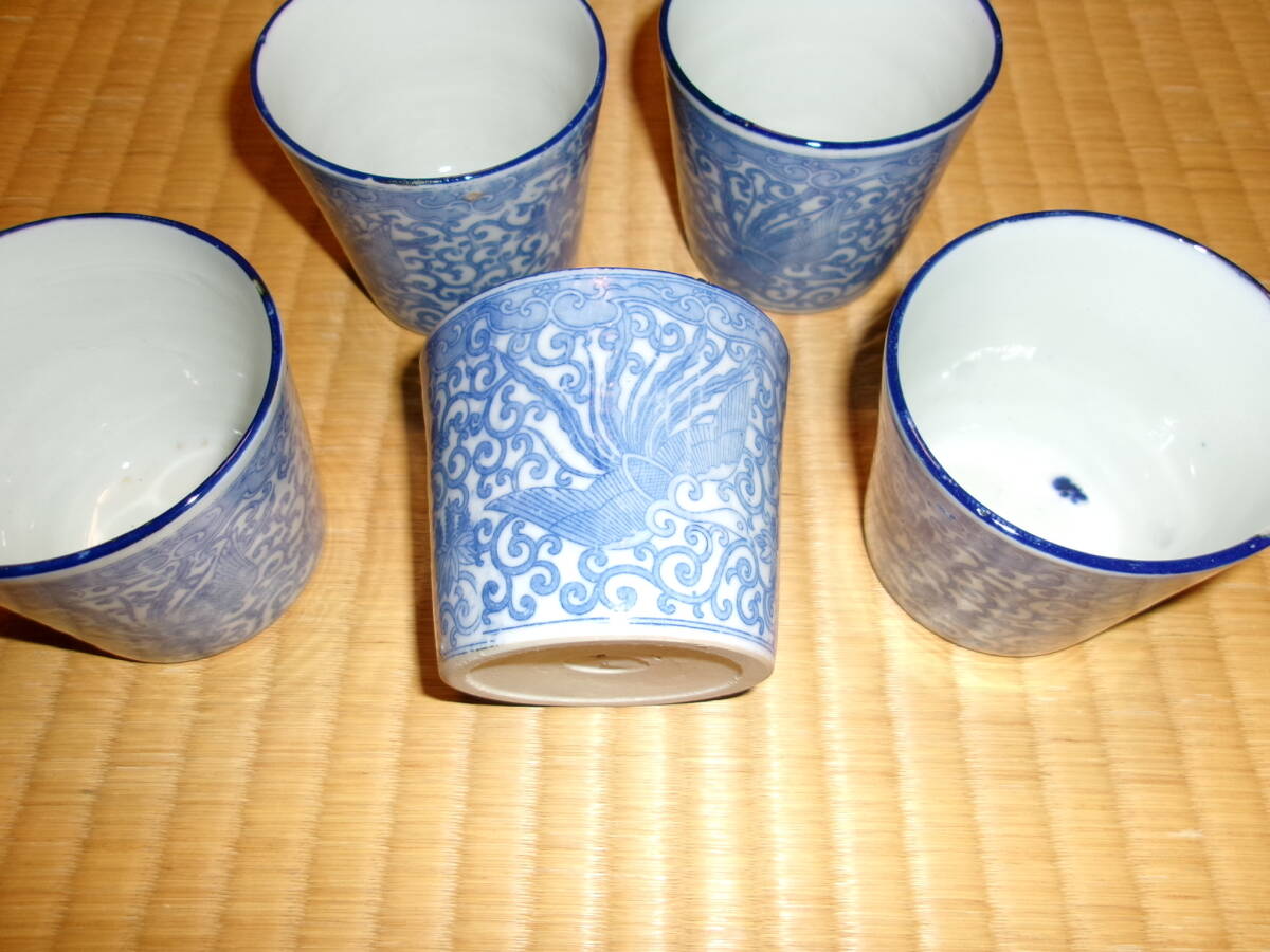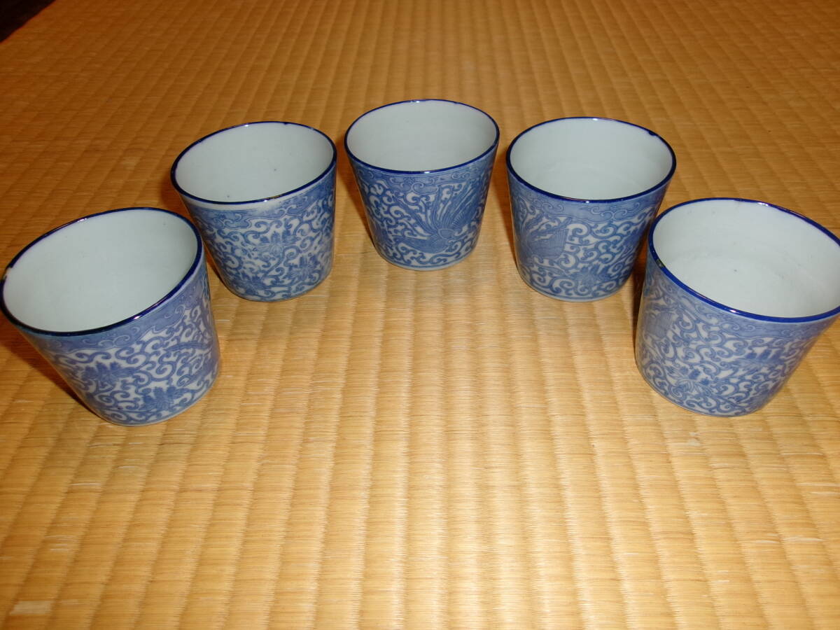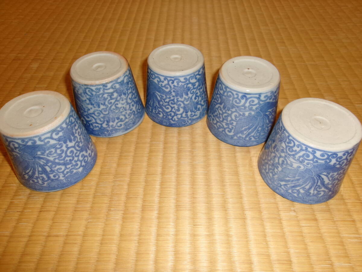 印版 蕎麦猪口 唐草 鳳凰文 5客セット そば猪口 向付