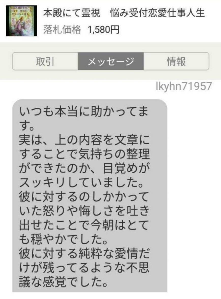幼い頃から、いわゆる霊が見える人間であります。小学校に通う頃に更にはっきり見えるようになりました。時に怖い時もありますが、良い方向に生かしたくメルカリ様で取り引きも2年になりましたので始めました。