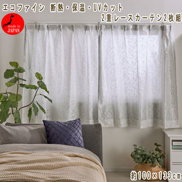 エコファイン 断熱・保温・UVカット 2重レースカーテン2枚組 100×133cm 12650円相当 | |