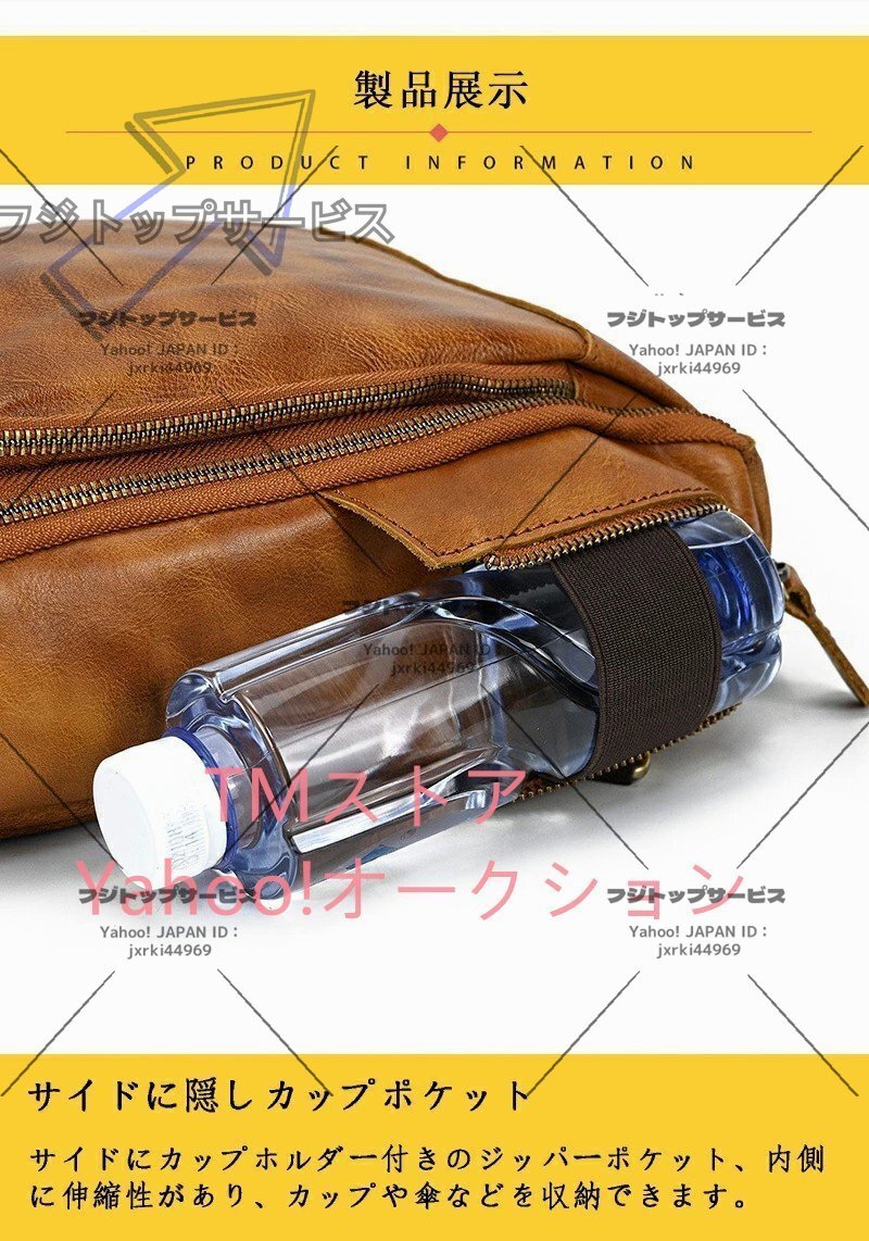 数あるオークションの中からご覧頂き、本当にありがとうございます♪当方、お客様が安心して取引が出来るよう真心込めて【商品詳細】★状態:新品未使用◆素材(外側):本革◆カラー: ブラウン◆サイズ:横19cm×縦 33cm×マチ8cm ショルダーベルト(調節可能) 0.65KG◆収納