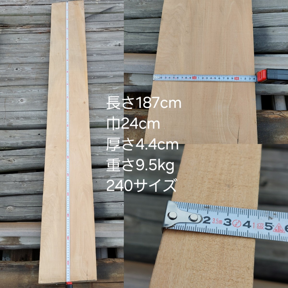 品名: 欅 板 棚板 長さ187cm 巾24cm 厚さ4.4cm 重さ9.5kg