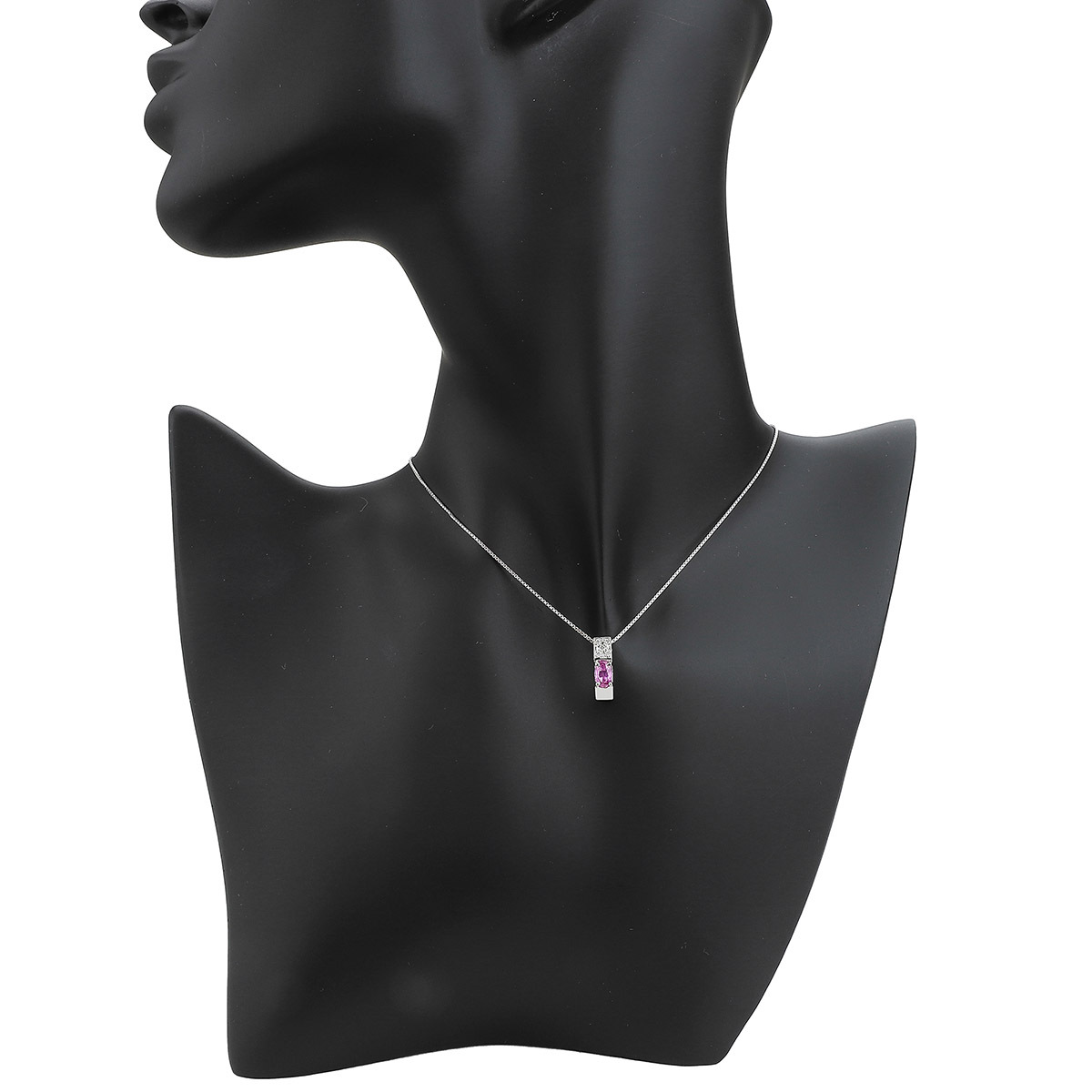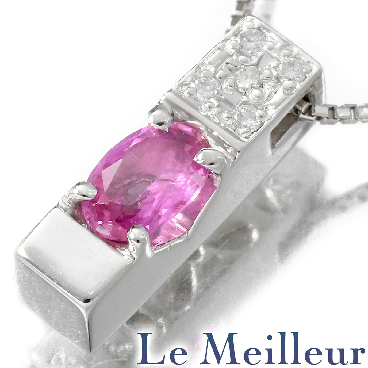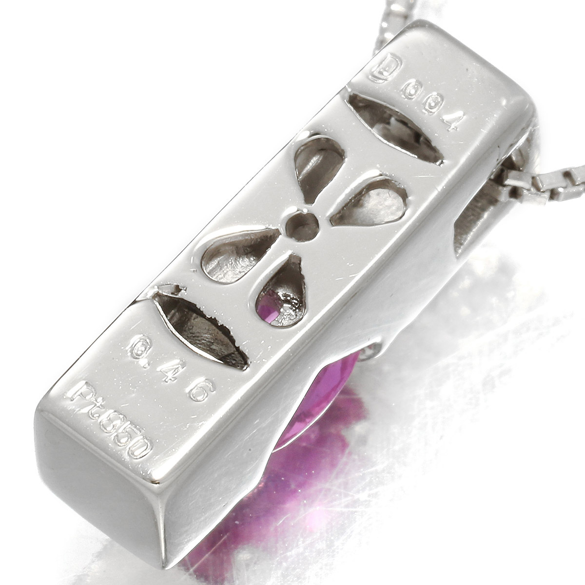 ピンクサファイアが胸元でそっと煌めく、上品なペンダントネックレス。肌なじみのよい色合いとプラチナの艶が、シンプルながらも洗練された印象を演出します。