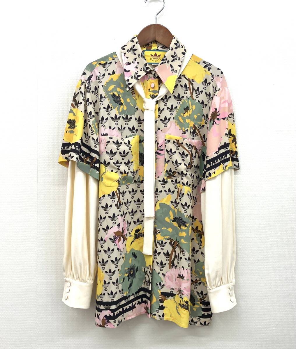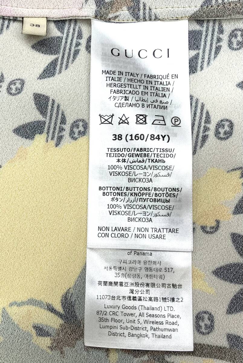 ブランド名:グッチ 品名:シャツ ブラウス 素材:レーヨン100% サイズ:38 裄丈87cm 身幅53cm 着丈72cm 状態:多少使用感 備考:タイ取り外し可能 | ||||||