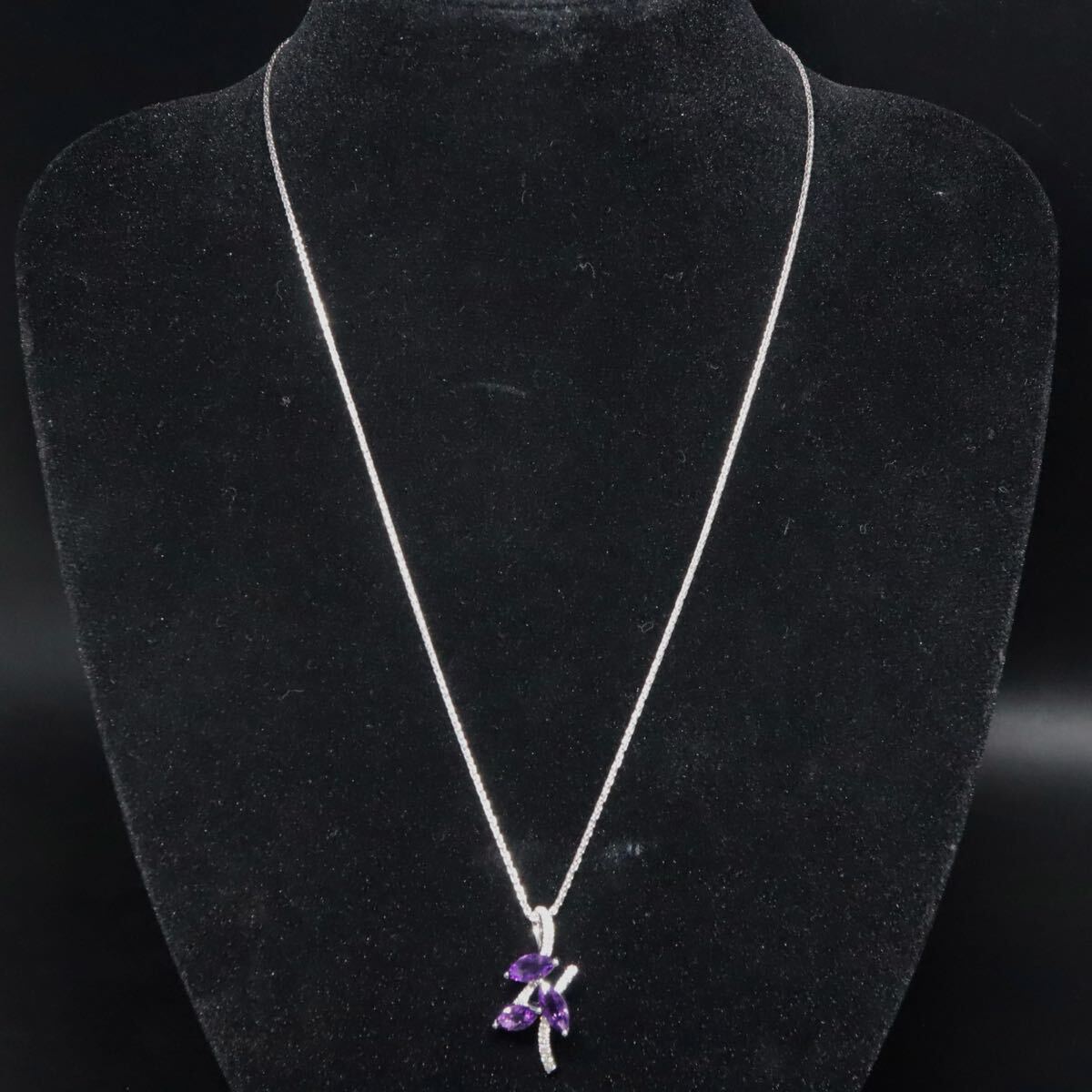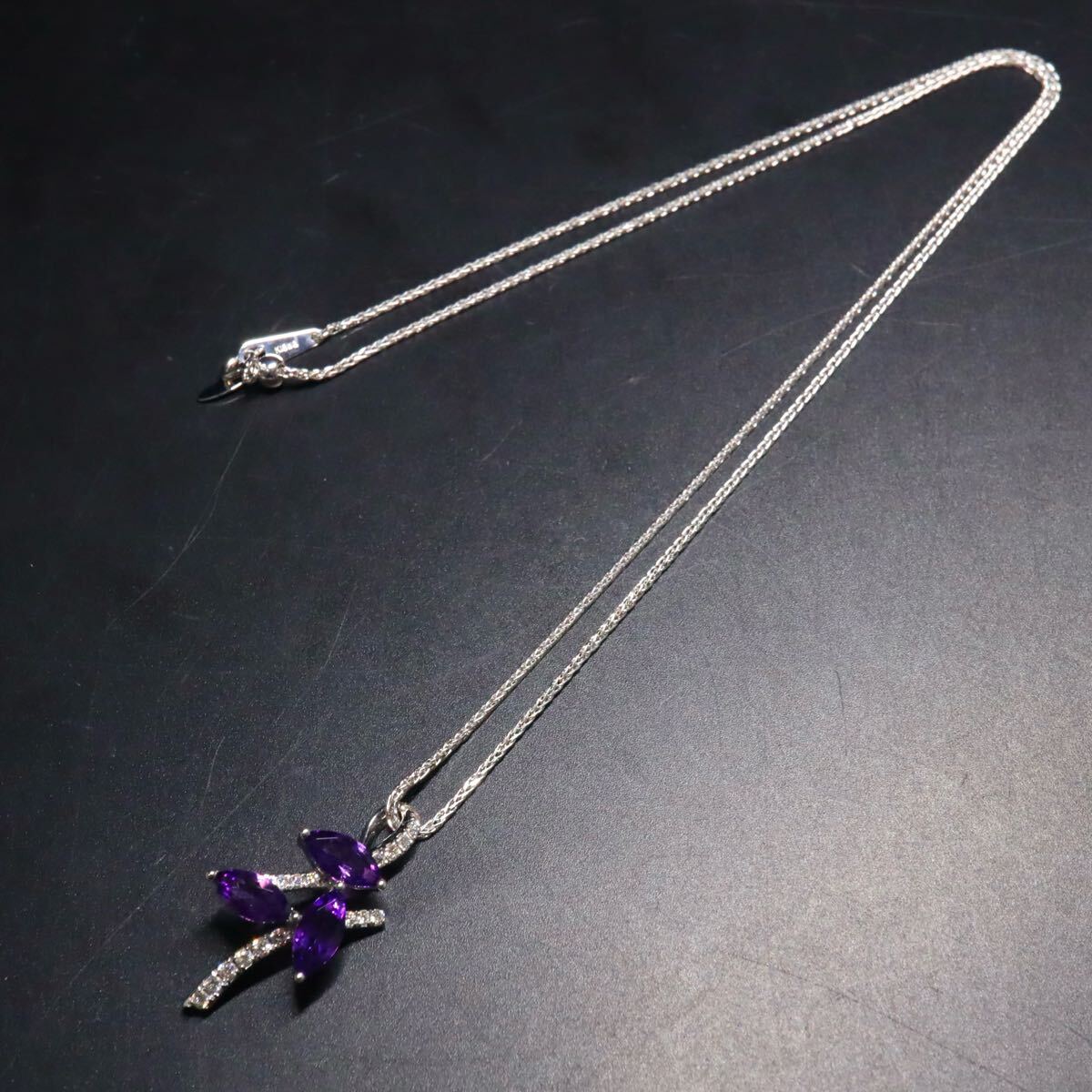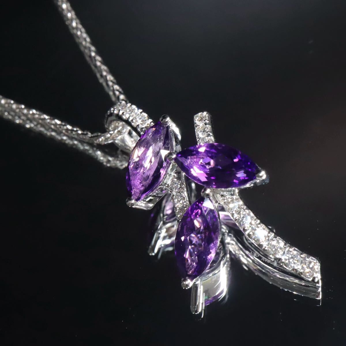 〈天然ダイヤモンド/天然アメジストネックレス〉