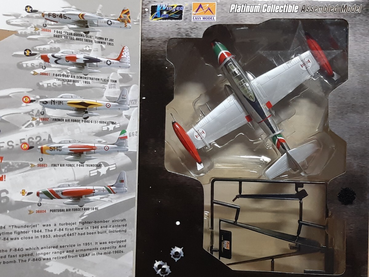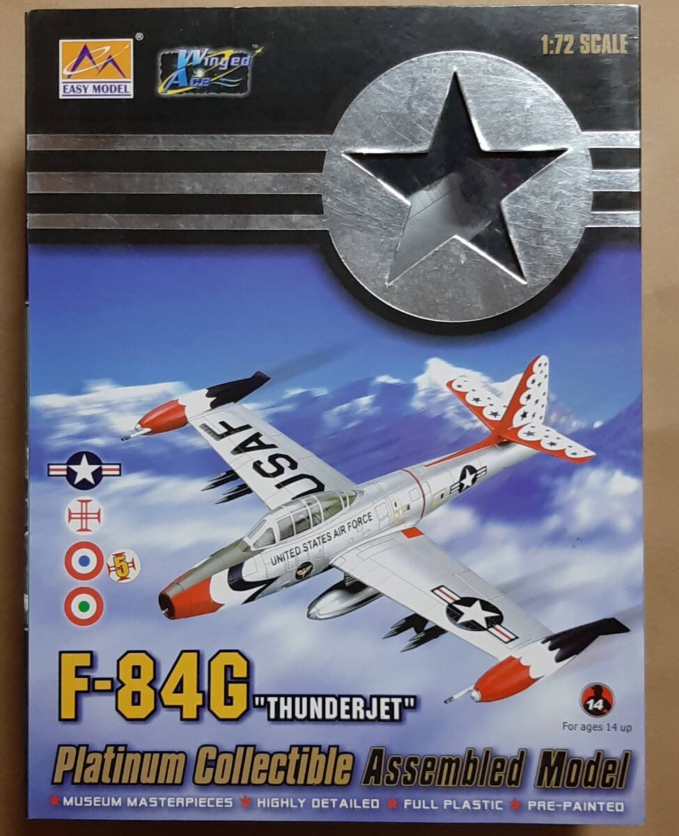 複数の固定未開封の未使用新品です。オークションではあまり見かけない希少品です。「P-47 サンダーボルト」を開発したリパブリック社初のジェット戦闘機で、「P-51 マスタング」を開発したノースアメリカン社初のジェット戦闘機「F-86 セイバー」とはライバル関係でした。