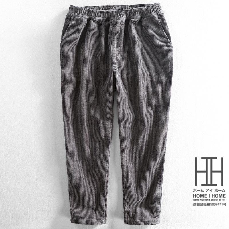コーデュロイパンツ メンズ アンクル丈 ノータック ウエストゴム コール天 中コール 無地 シンプル パンツ ボトムス 秋 冬