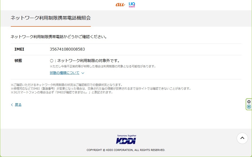 ●IMEI:356741080008583 ネットワーク利用制限○