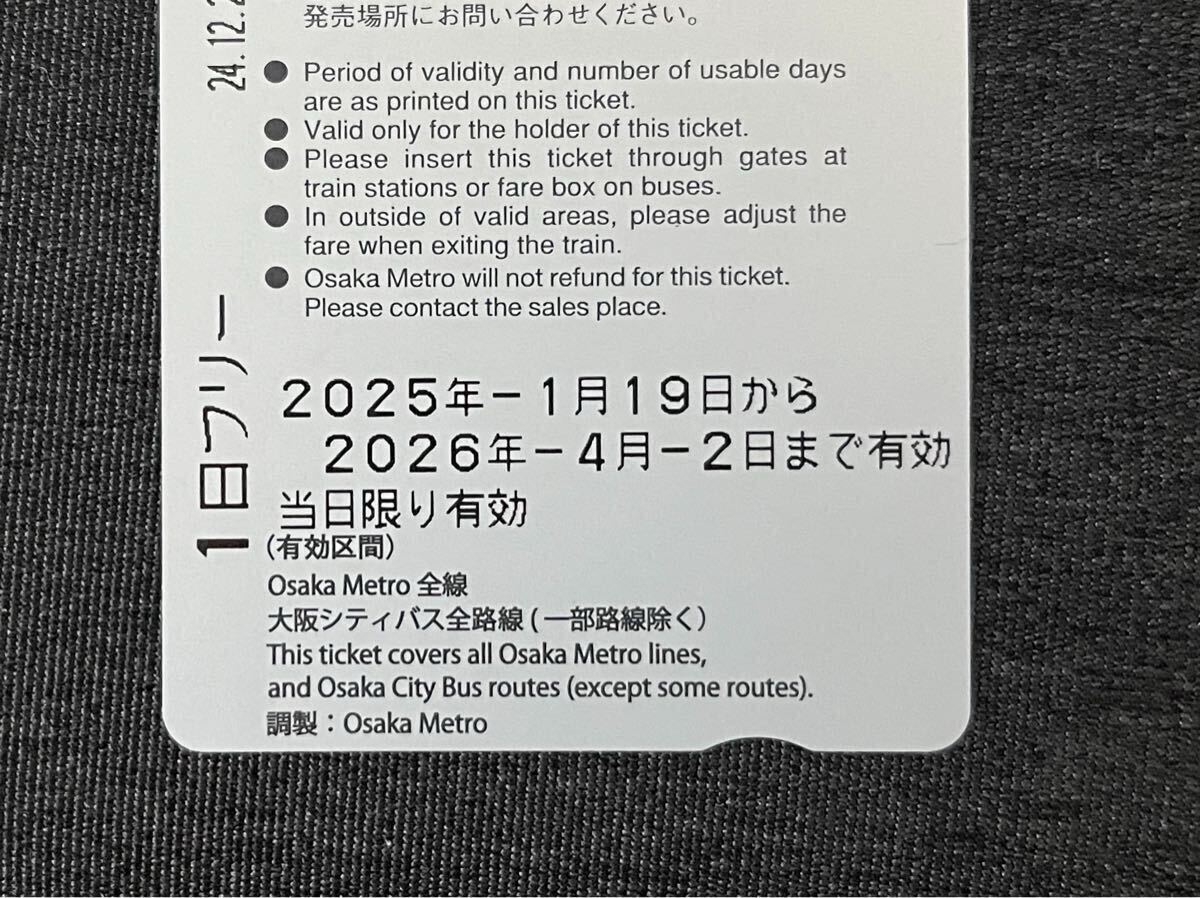 「Osaka Metro全線と大阪シティバスのほとんどの路線が、1日にわたって乗り放題になる便利な乗車券です。また、大阪市内の観光スポットで特典を受けることができます。」