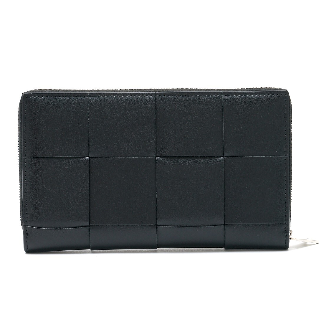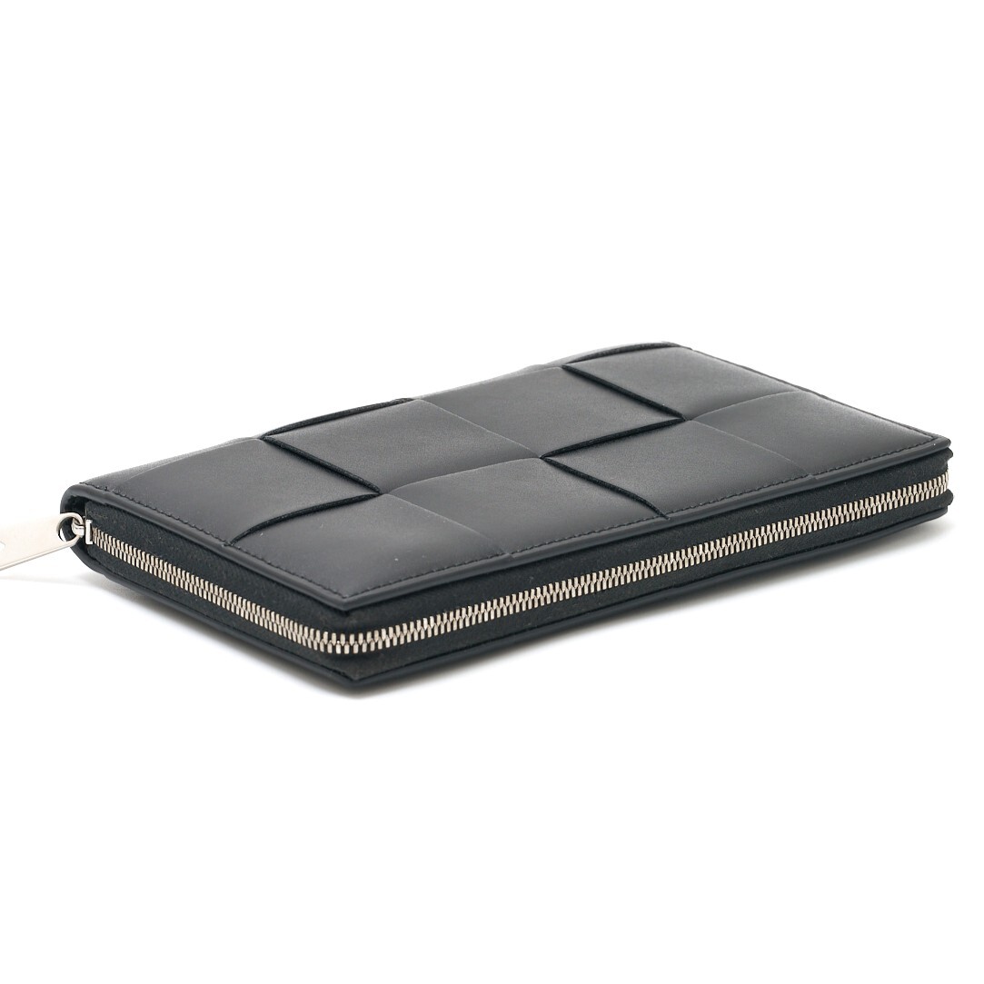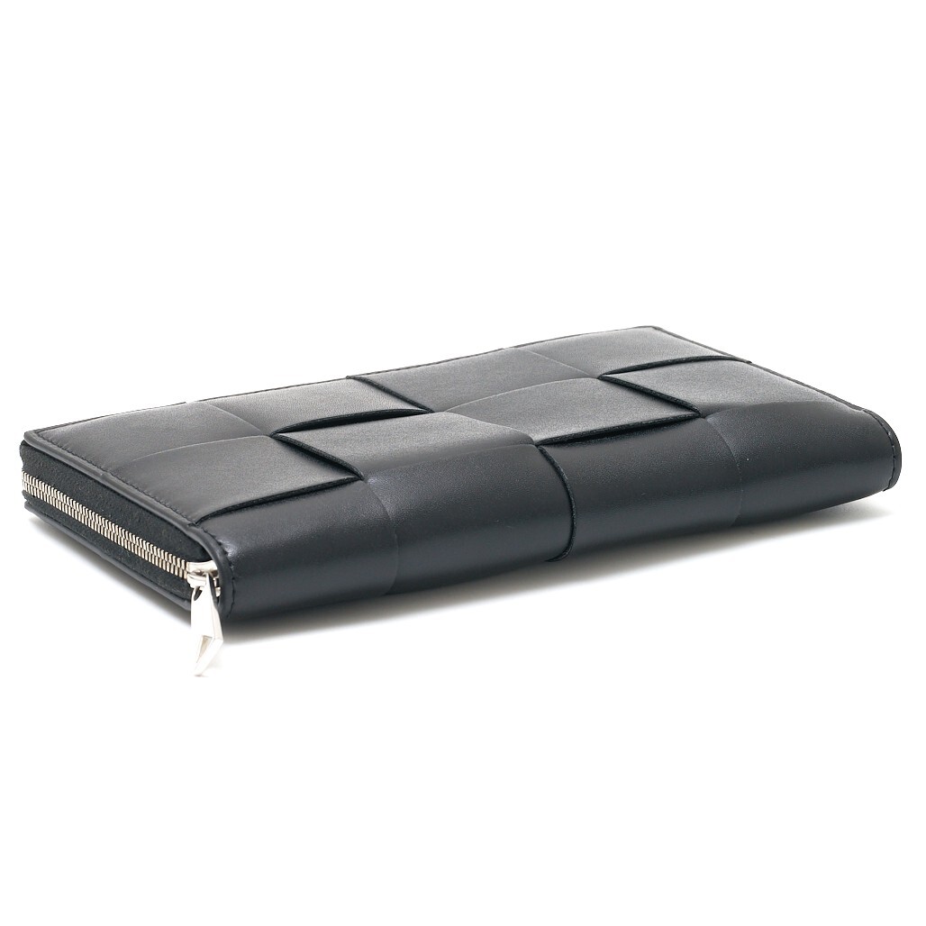 BOTTEGA VENETA ボッテガヴェネタ カセット ジップアラウンドウォレット 長財布 レザー ブラック×シルバー金具 メンズ レディース